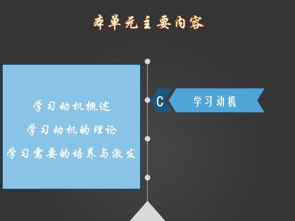 | 学习动机概述 | 学习动机的相关概念 学习动机对学习的影响 动机与学习效果的关系 学习动机的分类 |
