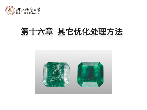 除了之前章节介绍的染色处理、热处理、扩散处理、辐照处理等常见珠宝玉石优化处理方法以外,在市场上还可见到一些诸如充填、覆膜、拼合等优化处理方式改善的宝石材料,本节主要讲授这些优化处理宝石的简单处理方法及鉴定特征。