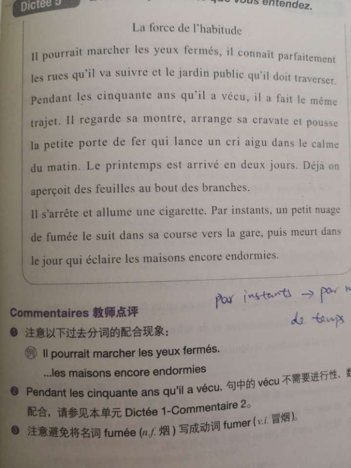 Par instants : par moments, de temps en temps. 时不时地(注意:instants是复数形式)