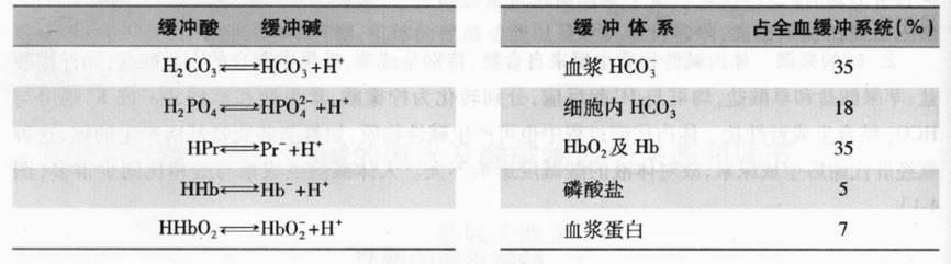 表4-1 全血的五种缓冲系统 表4-2 全血各缓冲体系的合量与分布