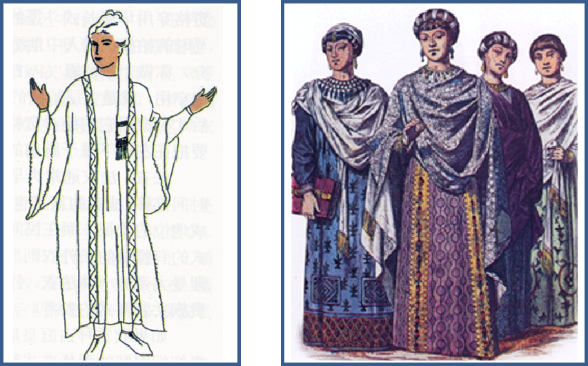 教学重点:拜占庭时期服装与服饰种类及款式特征;以及拜占庭时期服饰元素在现代时装设计中的应用。