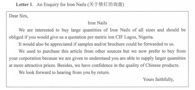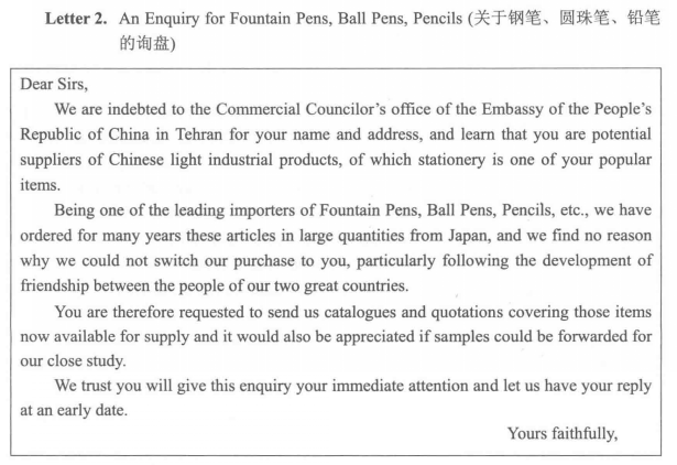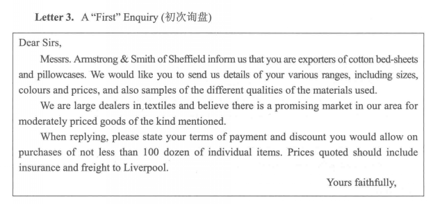 询盘函范例: