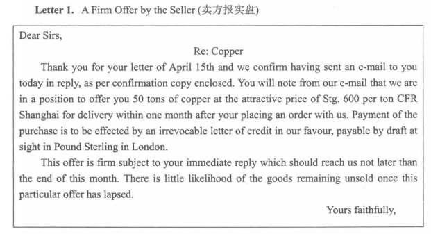 发盘函范例: