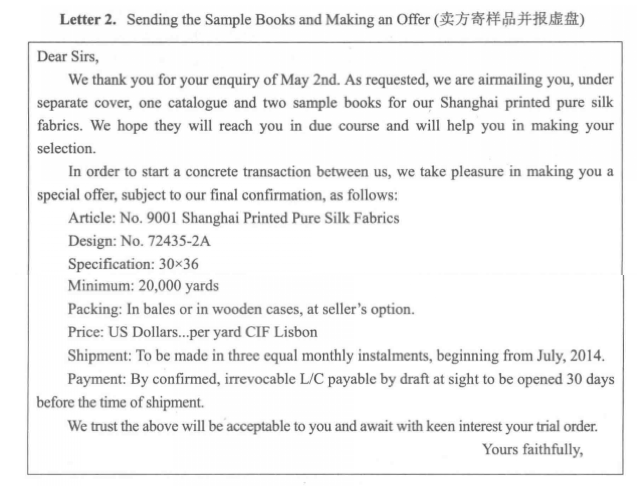 • 9.5 函电范例集  Samples