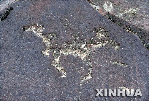 这是宁夏大麦地早期的一幅岩画(2005年10月1日摄)。近日,宁夏西北第二民族学院岩画研究中心首次向外界披露,在宁夏中卫大麦地发现的大量独立岩画群中,发现了中国最古老的图画文字,比甲骨文还要早几千年。目前,该研究成果已经上海古籍出版社古文字专家刘景云先生考证审定,并最终认为,大麦地岩画中的发现有可能改写中国的文字史。