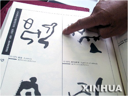 麦地岩画中的图画文字图案,新华社记者 刘晓莉 摄