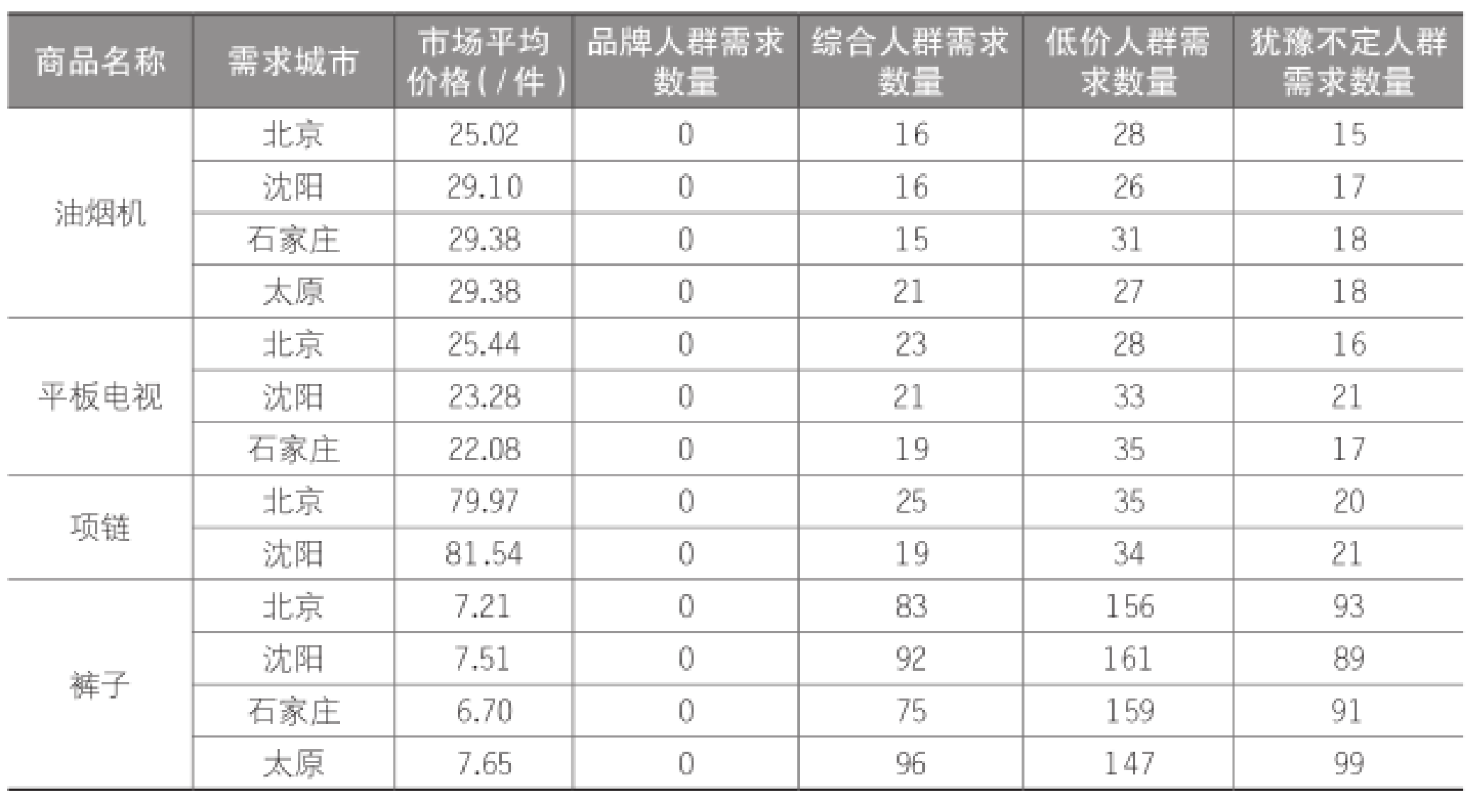 数据魔方提供的市场需求数据是不确定的,表2-5所示为第二轮第一期给出的市场需求数据,是基于某次10人组的经营数据,该数据仅供参考,具体数据以实际经营时系统提供的需求数据为准。