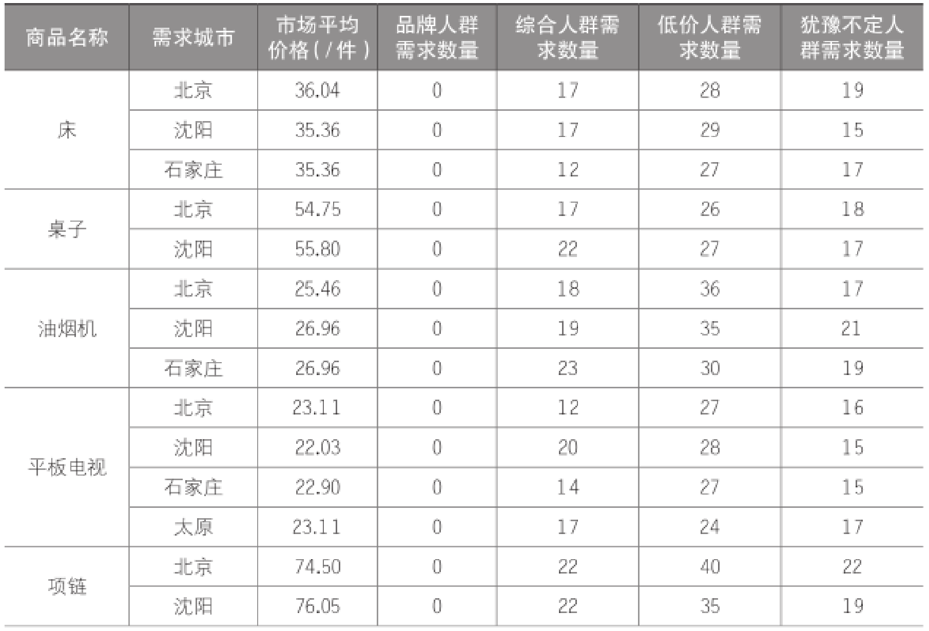 ③桌子北京市场的市场平均价格略有上升、沈阳的市场平均价格略有下降,价格整体波动不大,市场总需求下降明显,高达25%。