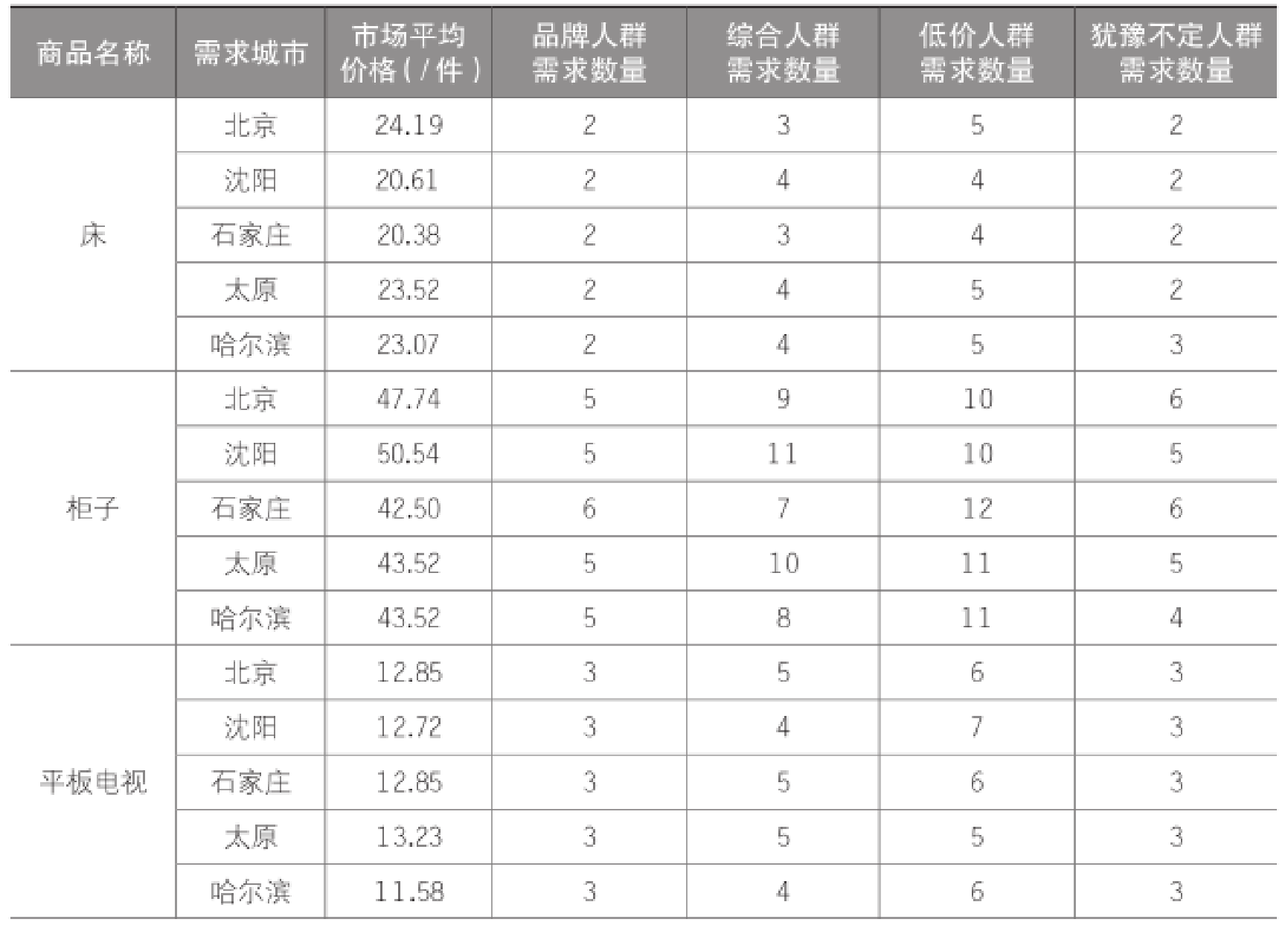 表2-17所示为第五轮第一期的市场需求数据,是基于某次10人组的经营数据,由于数据魔方提供的市场需求数据是不确定的,该数据仅供参考,具体数据以实际经营时系统提供的需求数据为准。