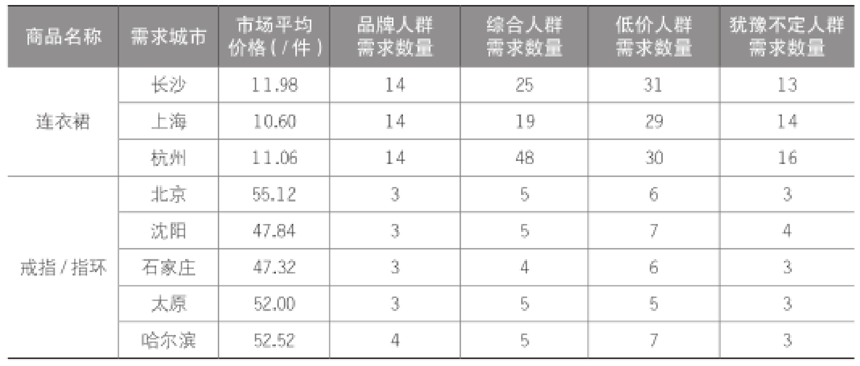 ⑨市场新增商品戒指/指环,需求城市有北京、沈阳、石家庄、太原、哈尔滨,市场整体需求量不大。