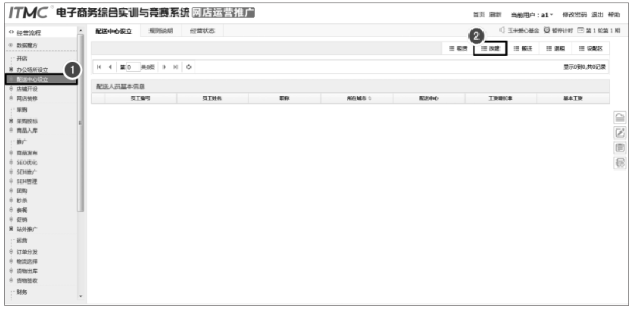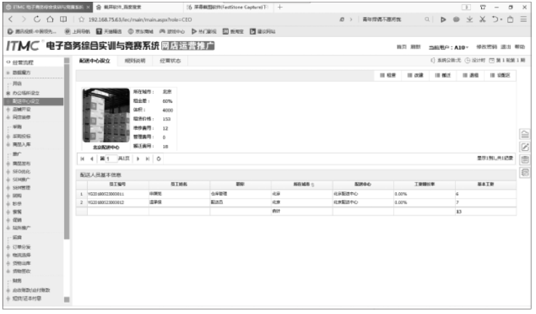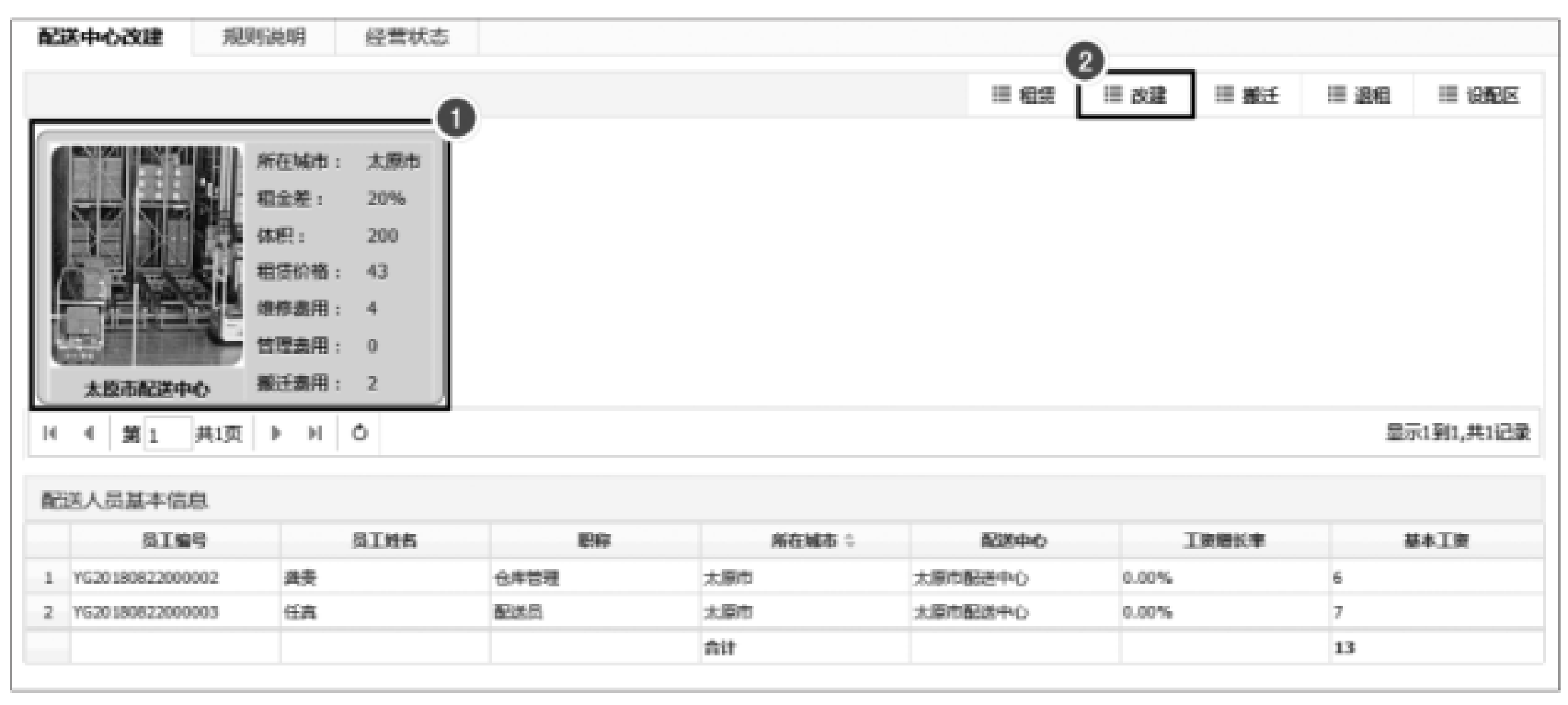 ① 租赁:一家模拟企业可租赁多个配送中心,但每个城市只能租赁一个配送中心。一旦建好一个配送中心,系统会自动创建两名员工,即一名仓库管理,基本工资为6,一名配送员,基本工资为7。
