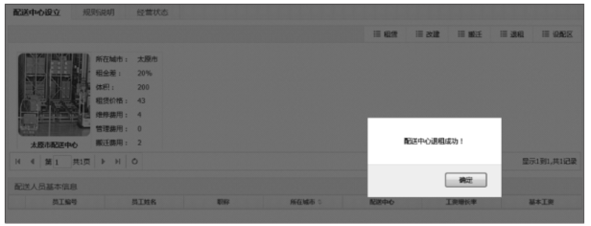 ④ 退租:闲置的仓库要退租,若不退租则到期后系统会默认续租;退租时,仓库必须空置;若在每期期中退租,仍需支付整期的配送中心人员工资。