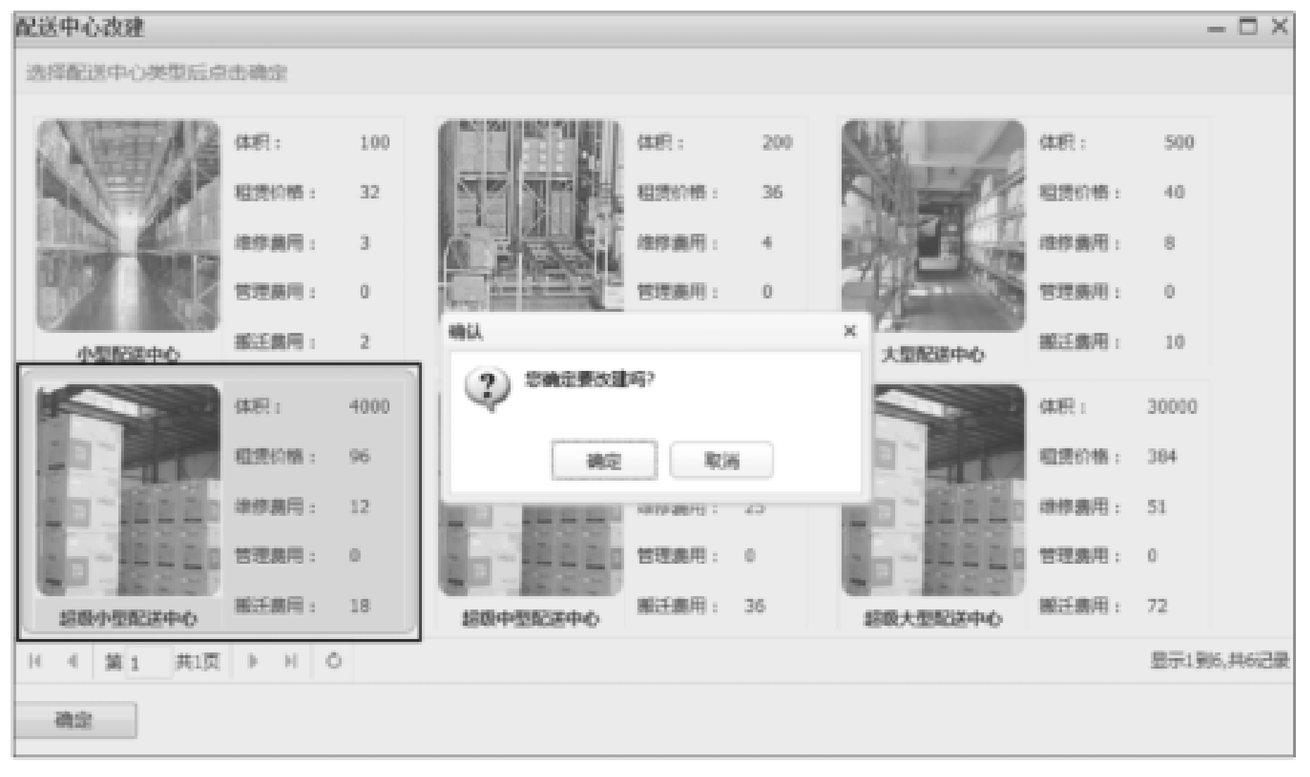 ③ 在出现的配送中心类型中单击选择要改建成的配送中心类型,被选中的配送中心类型颜色加深;