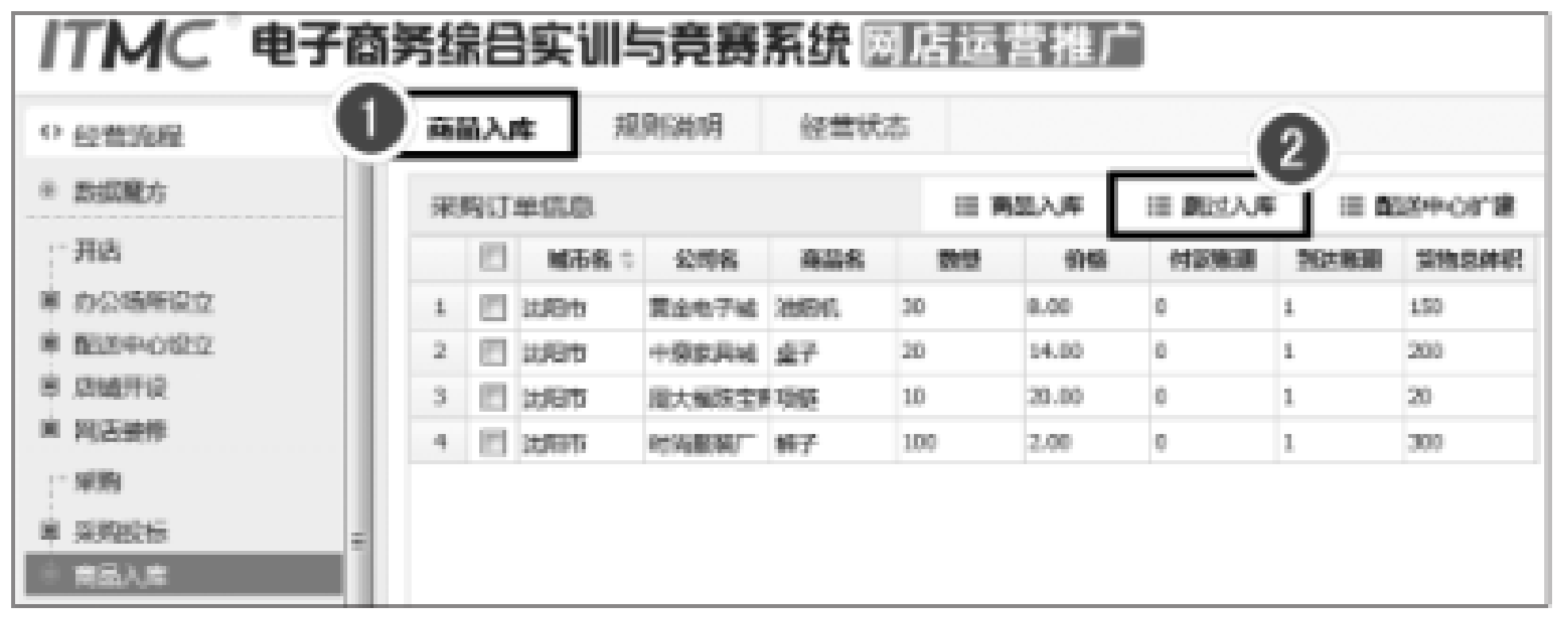 系统结束采购后,系统会自动评判中标单位。之后,模拟公司要对采购成功的商品进行入库处理,即商品入库。