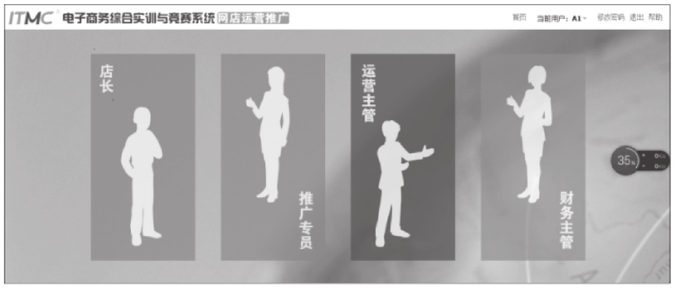 网店运营推广模块将学员分成若干个团队(通常为十个团队),每个团队各自经营一个虚拟公司,每个团队由4人组成(也可根据学员数量进行调整),每队成员将分别担任公司中的重要职位(店长、推广专员、运营主管、财务主管),每队拥有资金500(在ITMC电子商务沙盘系统中,500并不是人民币中的500元或500万元,可以把货币的计量单位理解成一种虚拟货币的计量单位),在同一市场环境下,各队按照数据魔方提供的数据在系统的规则下按照任务清单进行操作。