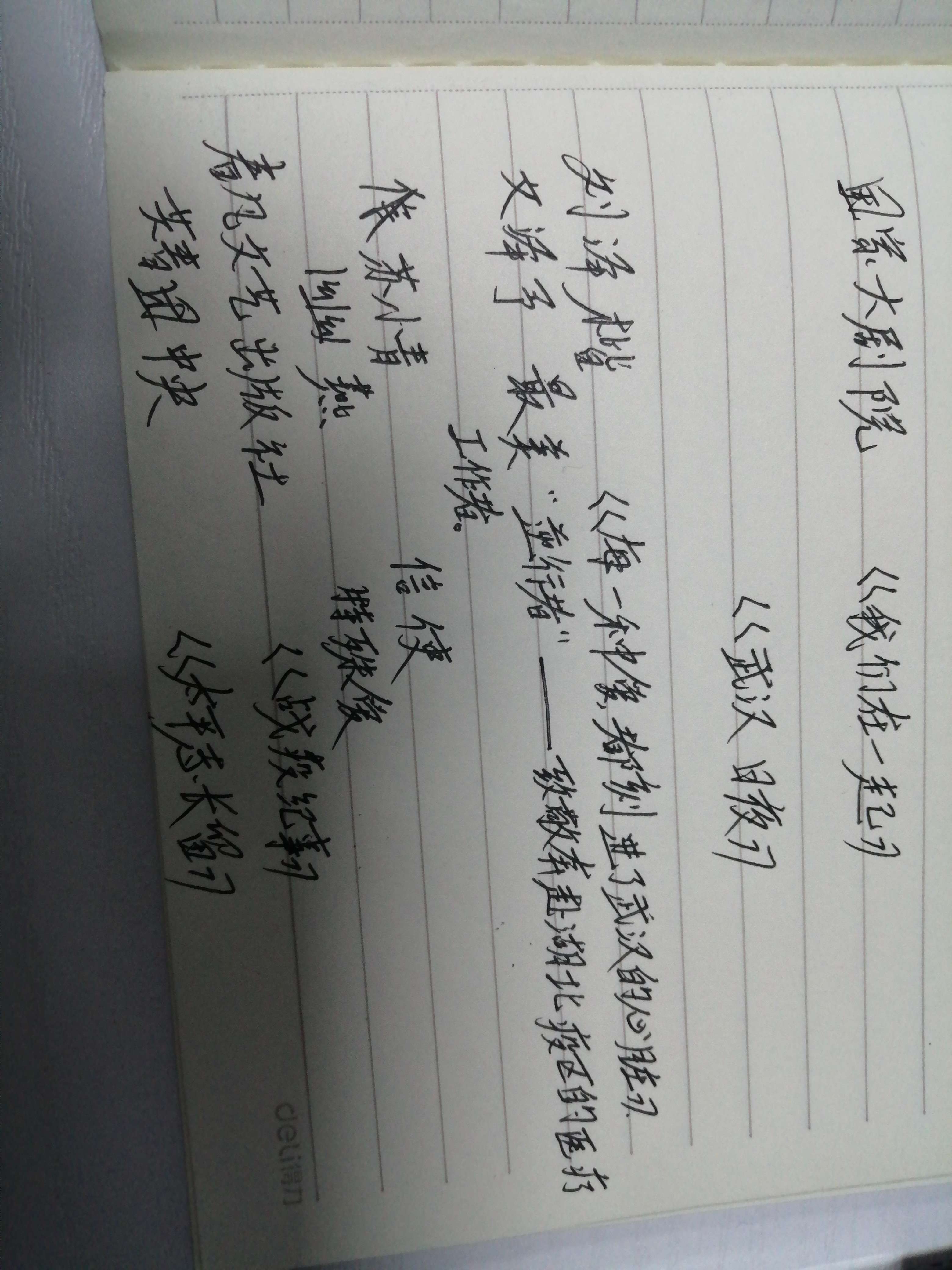池莉的《隔离时期的爱与情》、董宏猷的《我与武汉同在》、陈艳的诗歌《钟南山,你活成了我们的榜样》、抗击疫情的微电影《我们在一起》、易白的歌曲《唱给人民的信》等等。