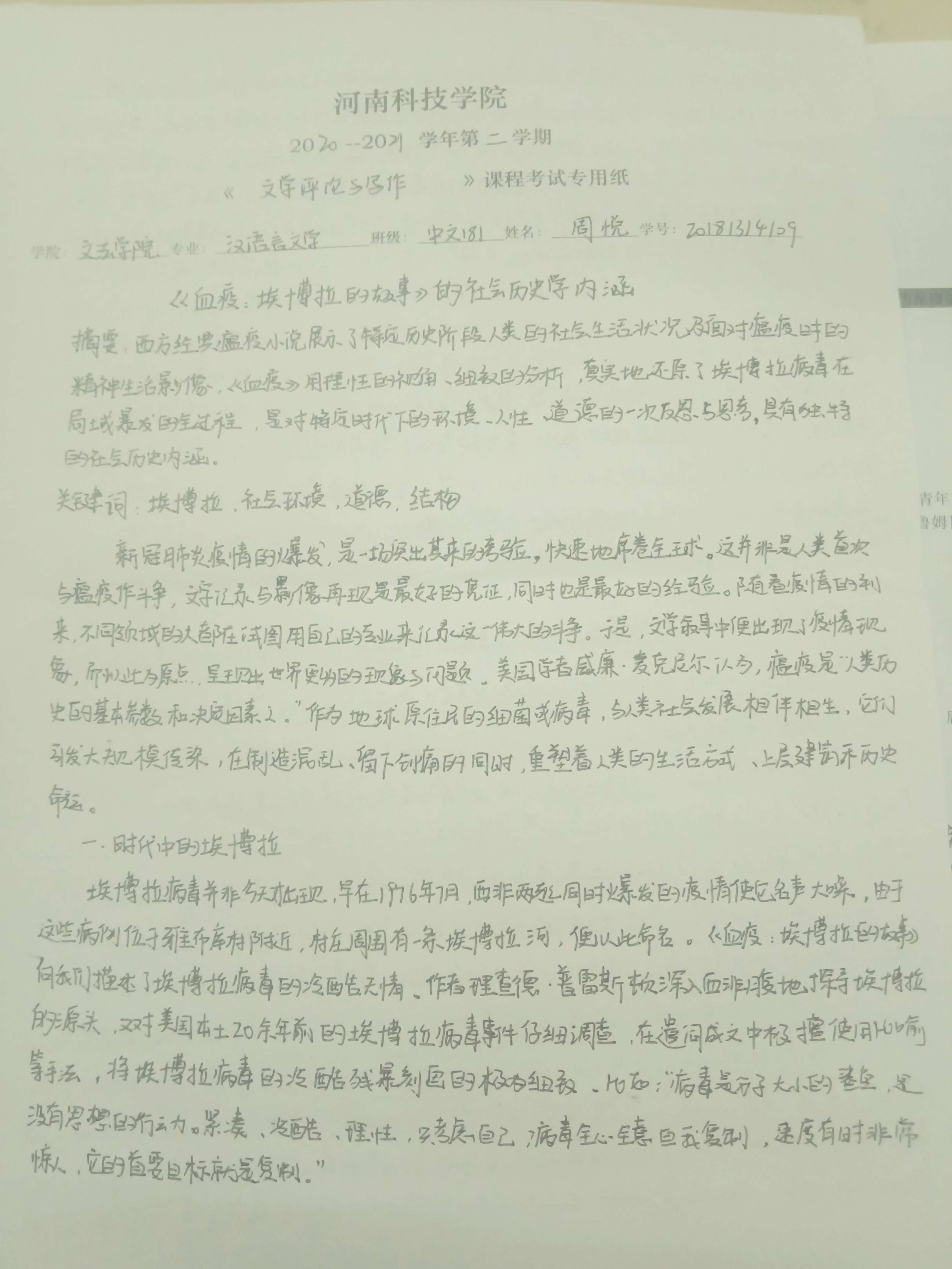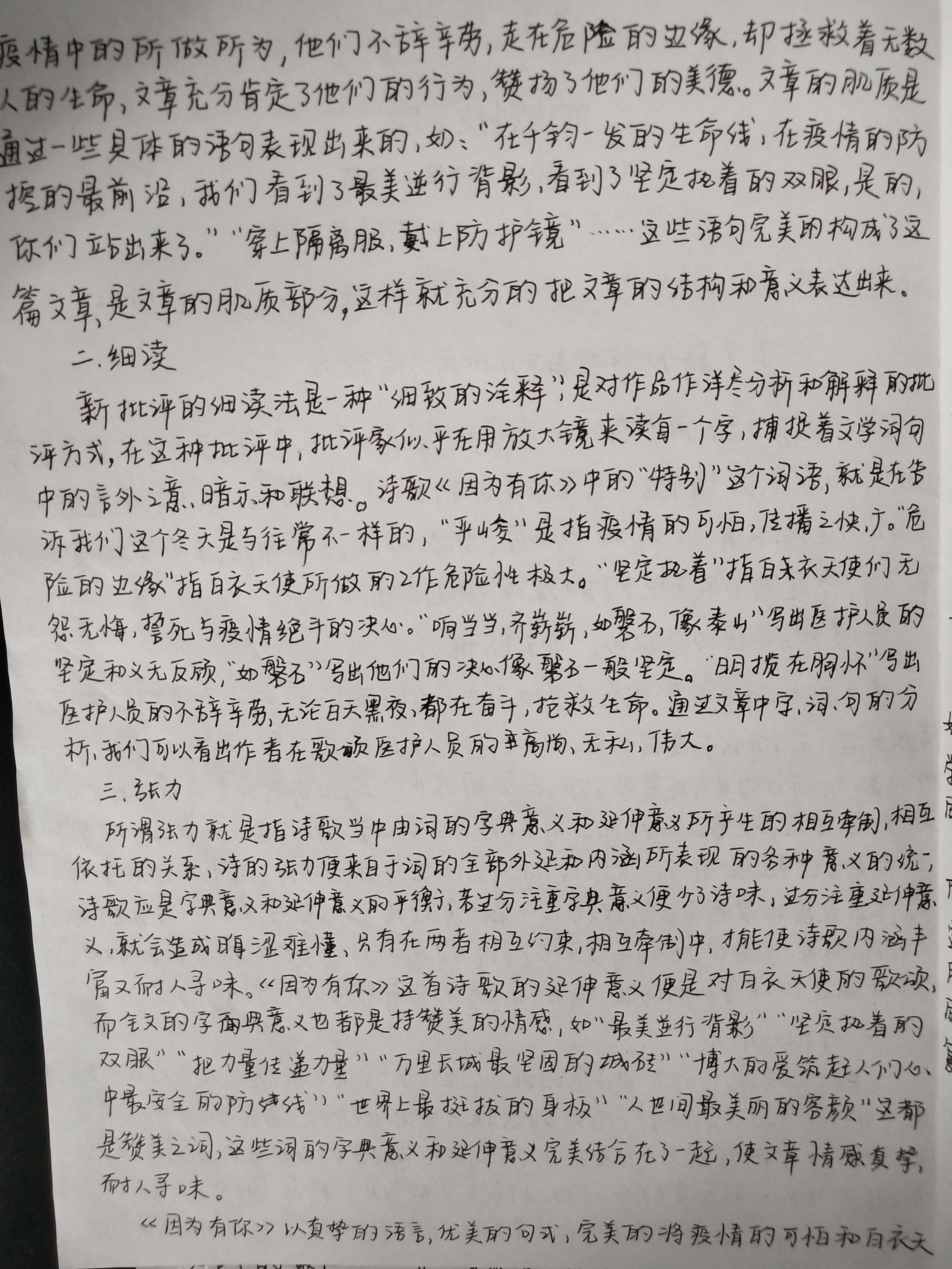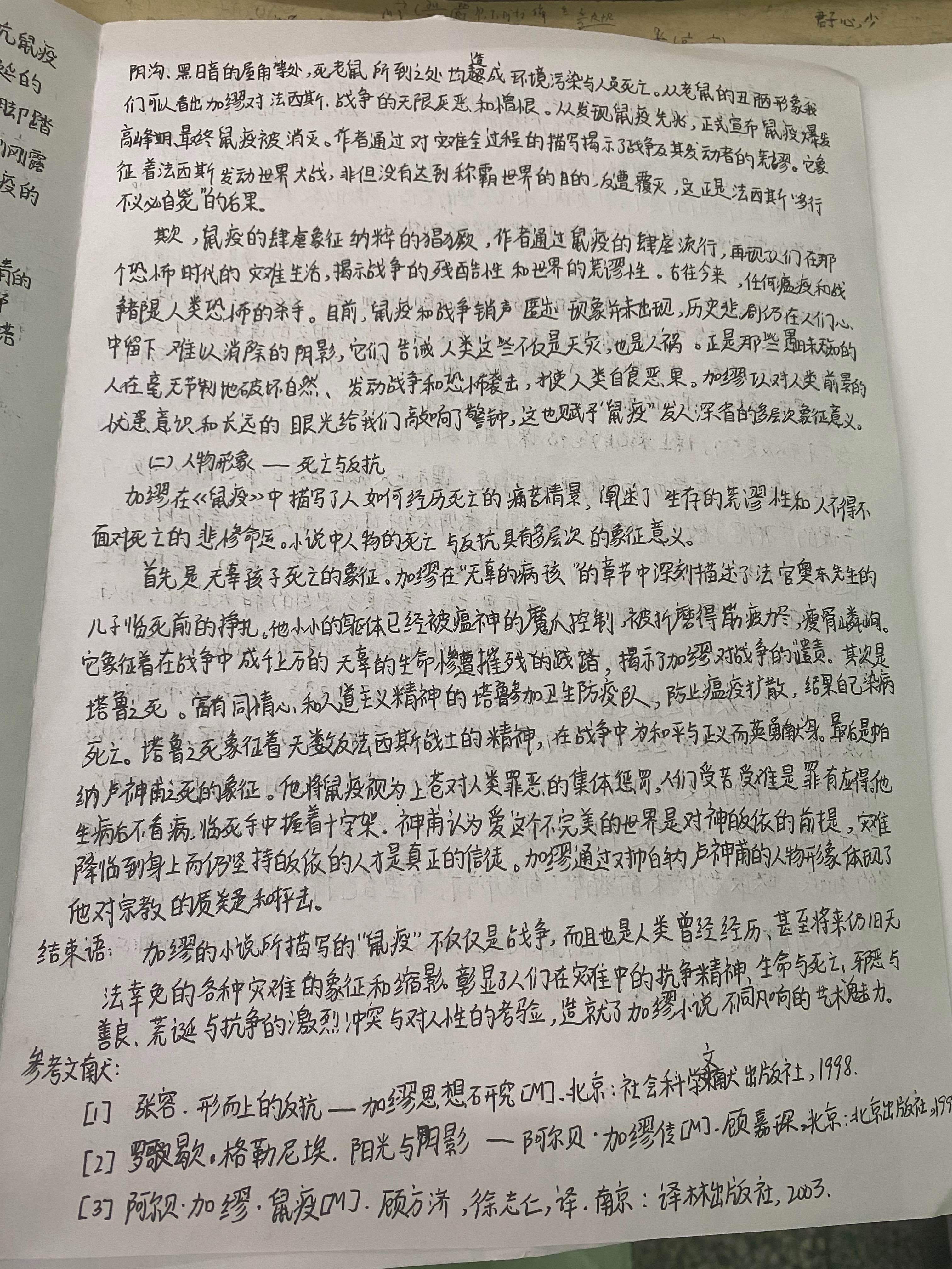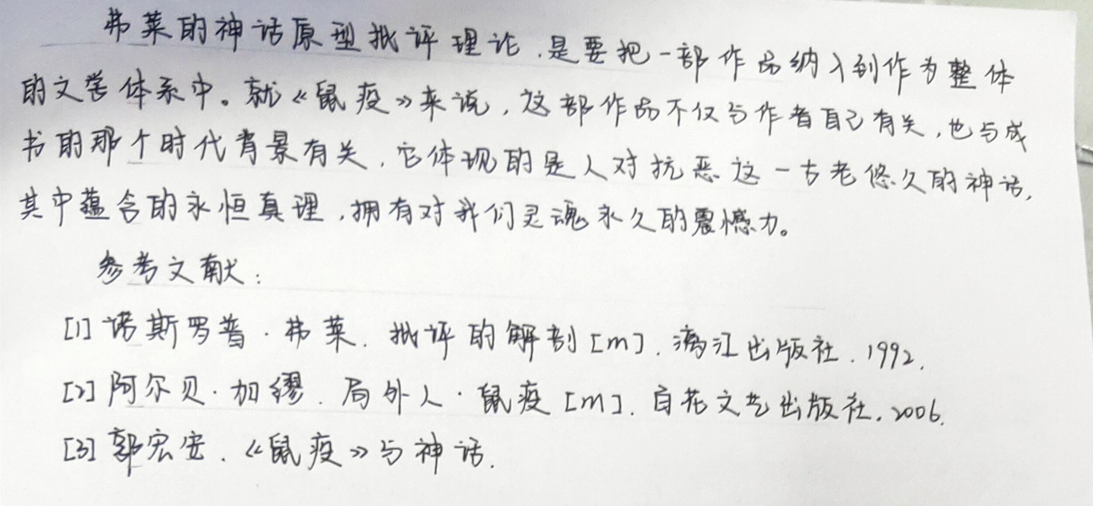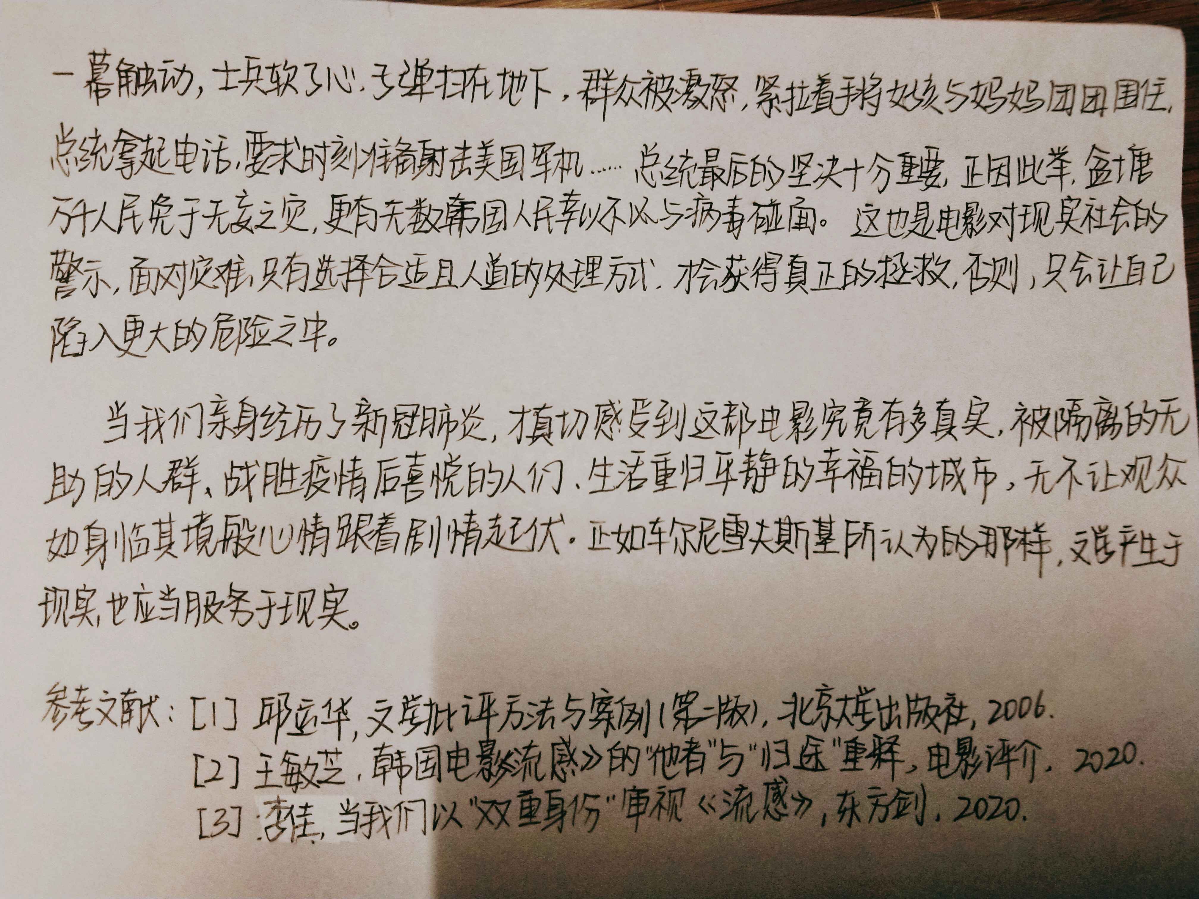 请同学们把期末考察作业即“关于疫情文学的评论”完成后,在微助教平台同时发送一份,(可以是拍照上传,也可以用讯飞手写字转word后进行电子版上传),辛苦大家啦,谢谢!