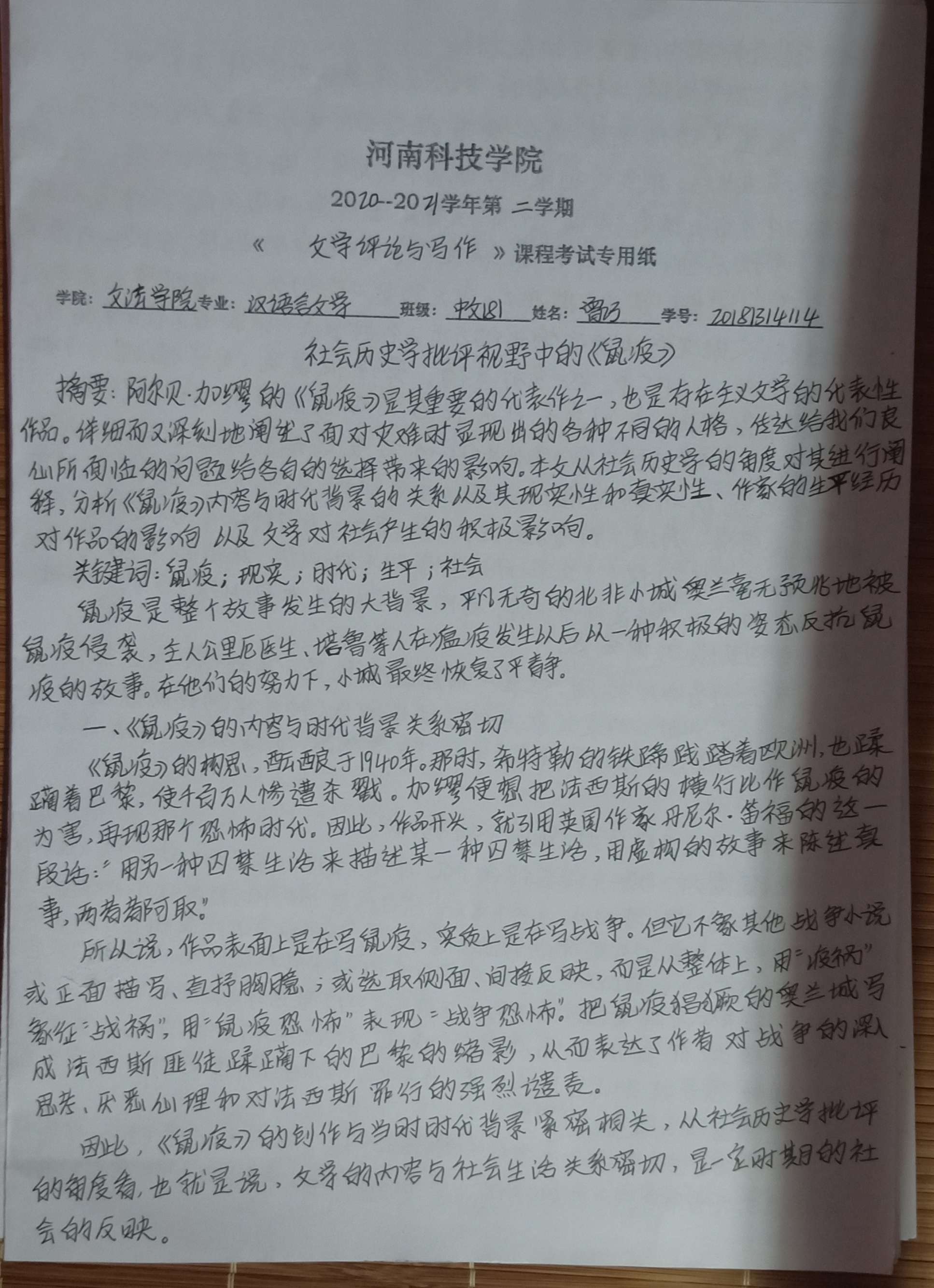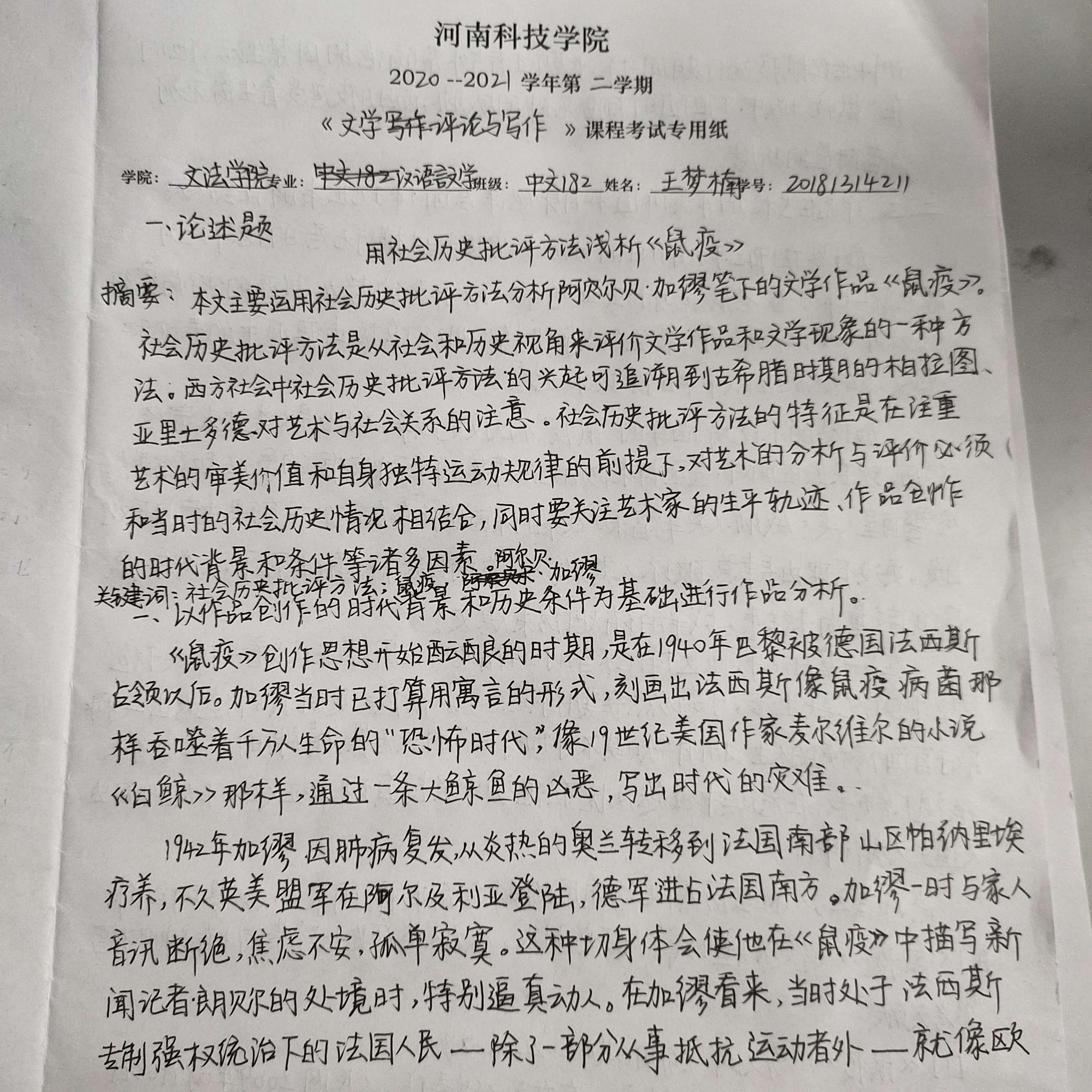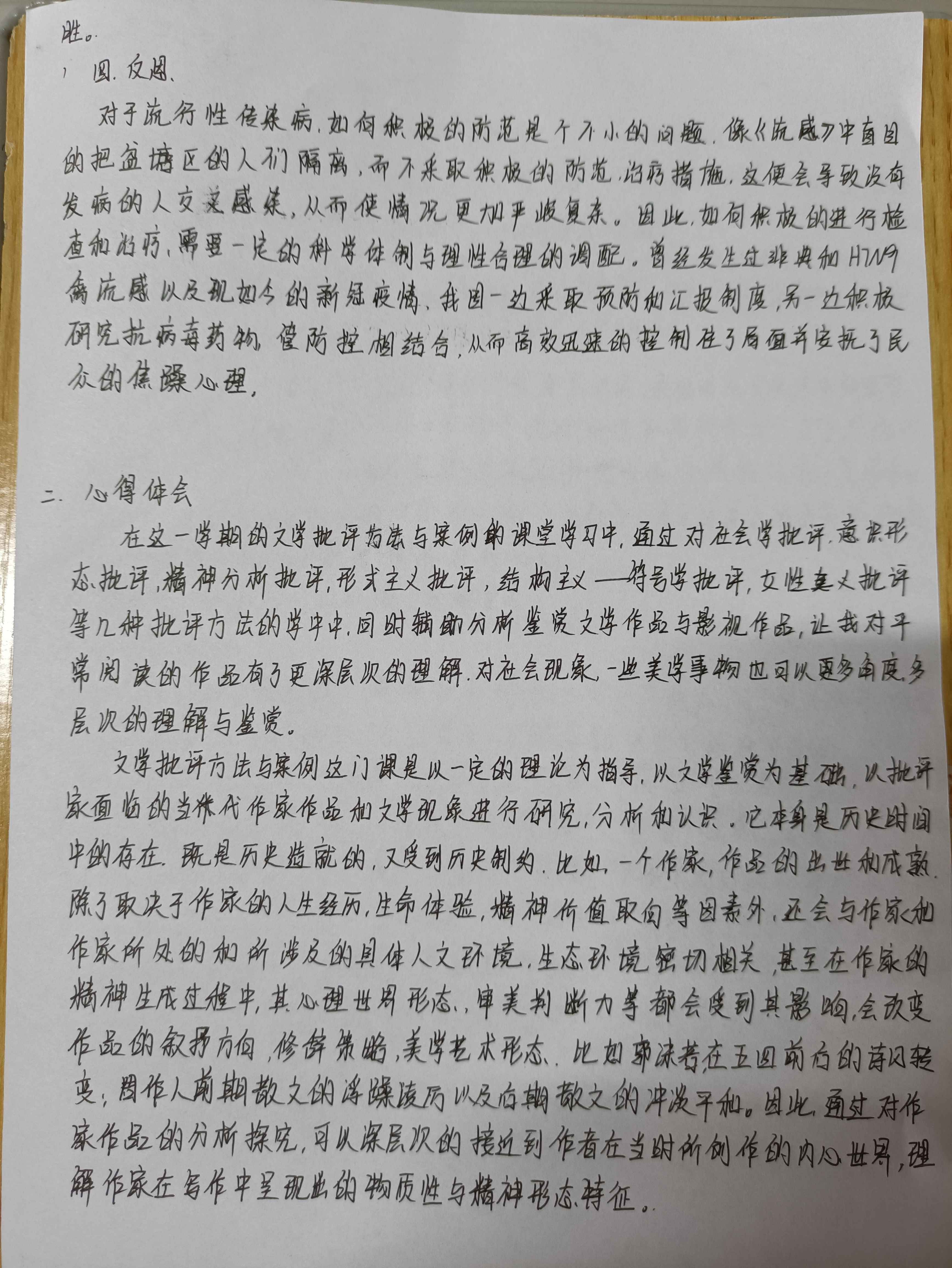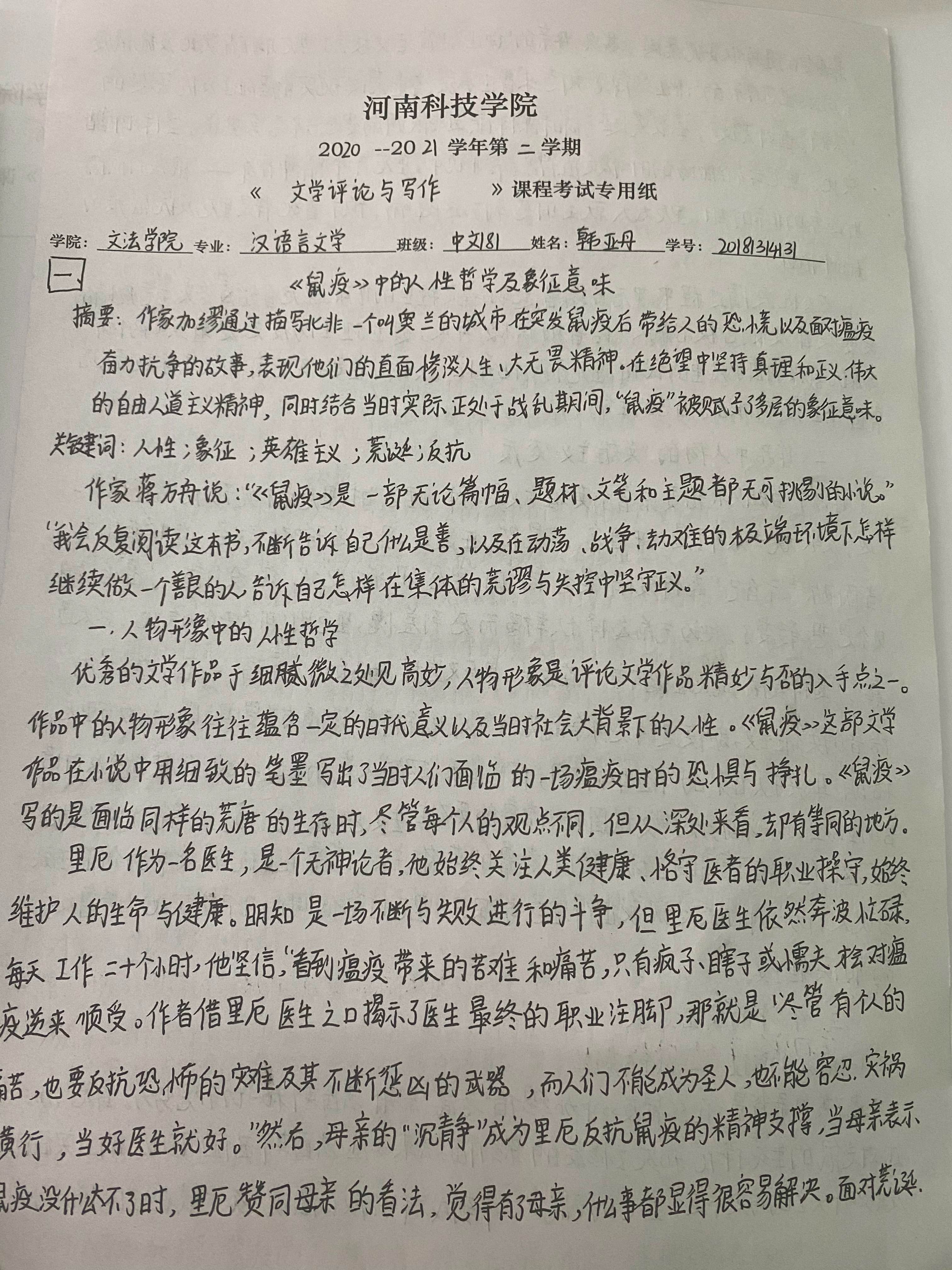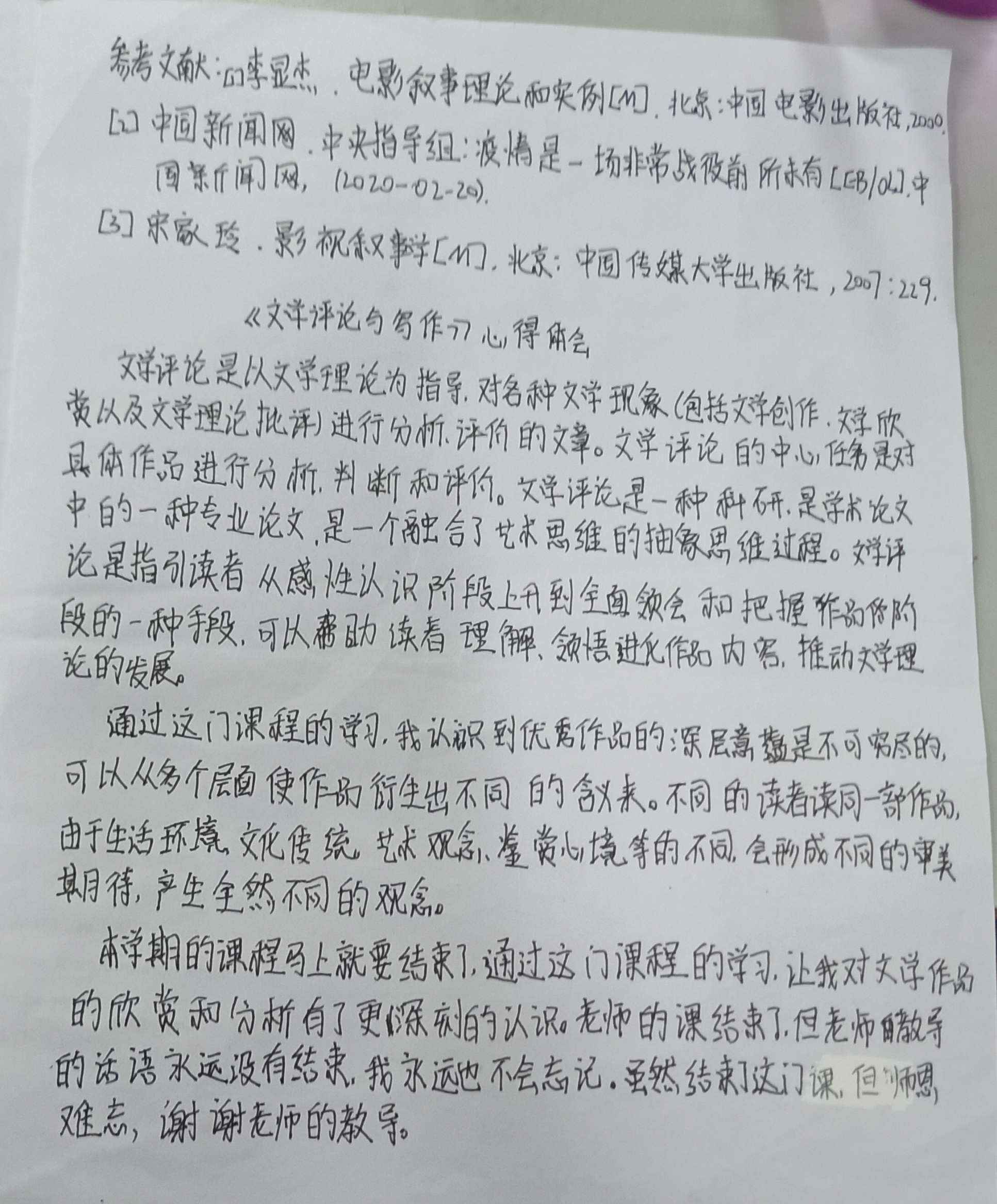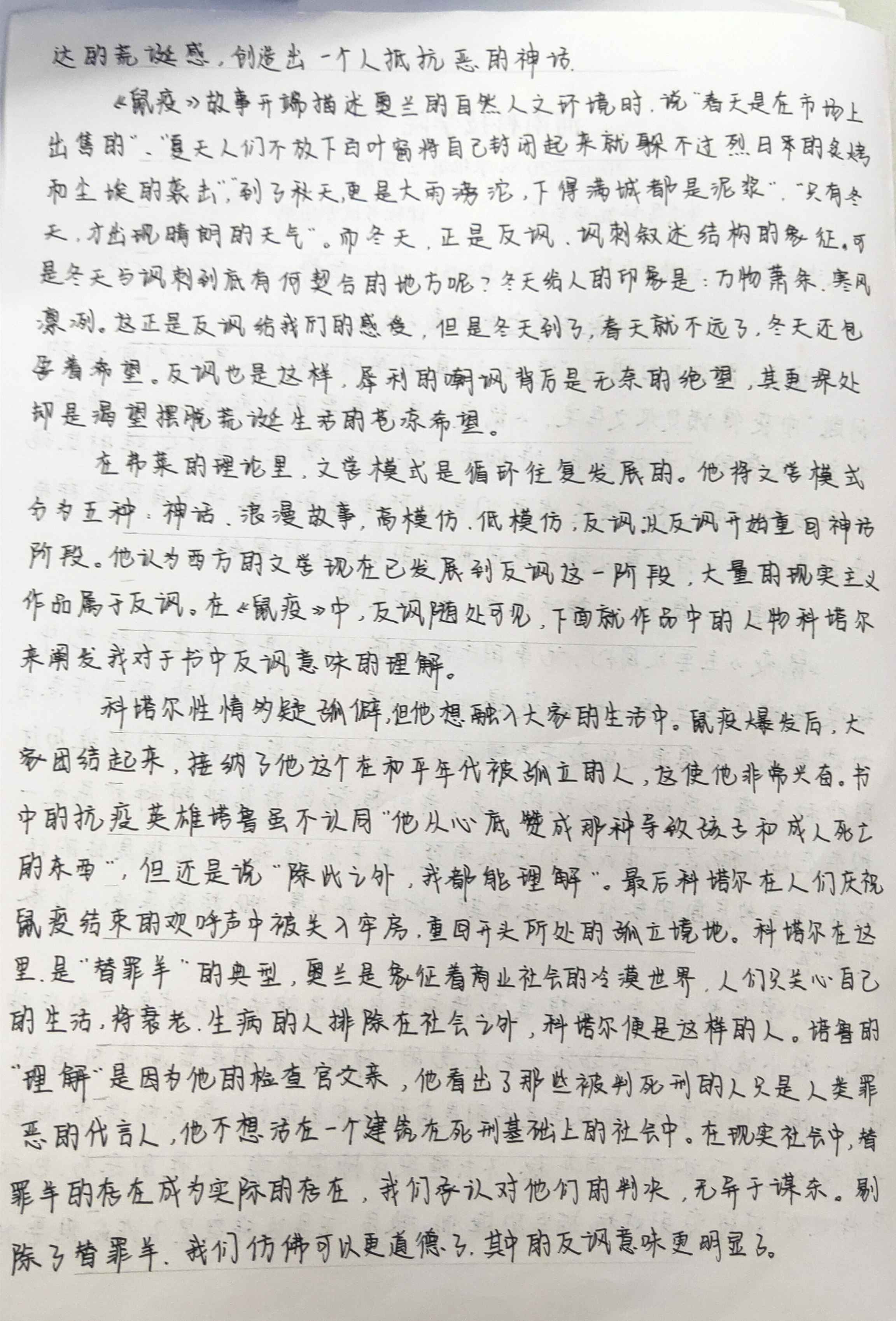 请同学们把期末考察作业即“关于疫情文学的评论”完成后,在微助教平台同时发送一份,(可以是拍照上传,也可以用讯飞手写字转word后进行电子版上传),辛苦大家啦,谢谢!