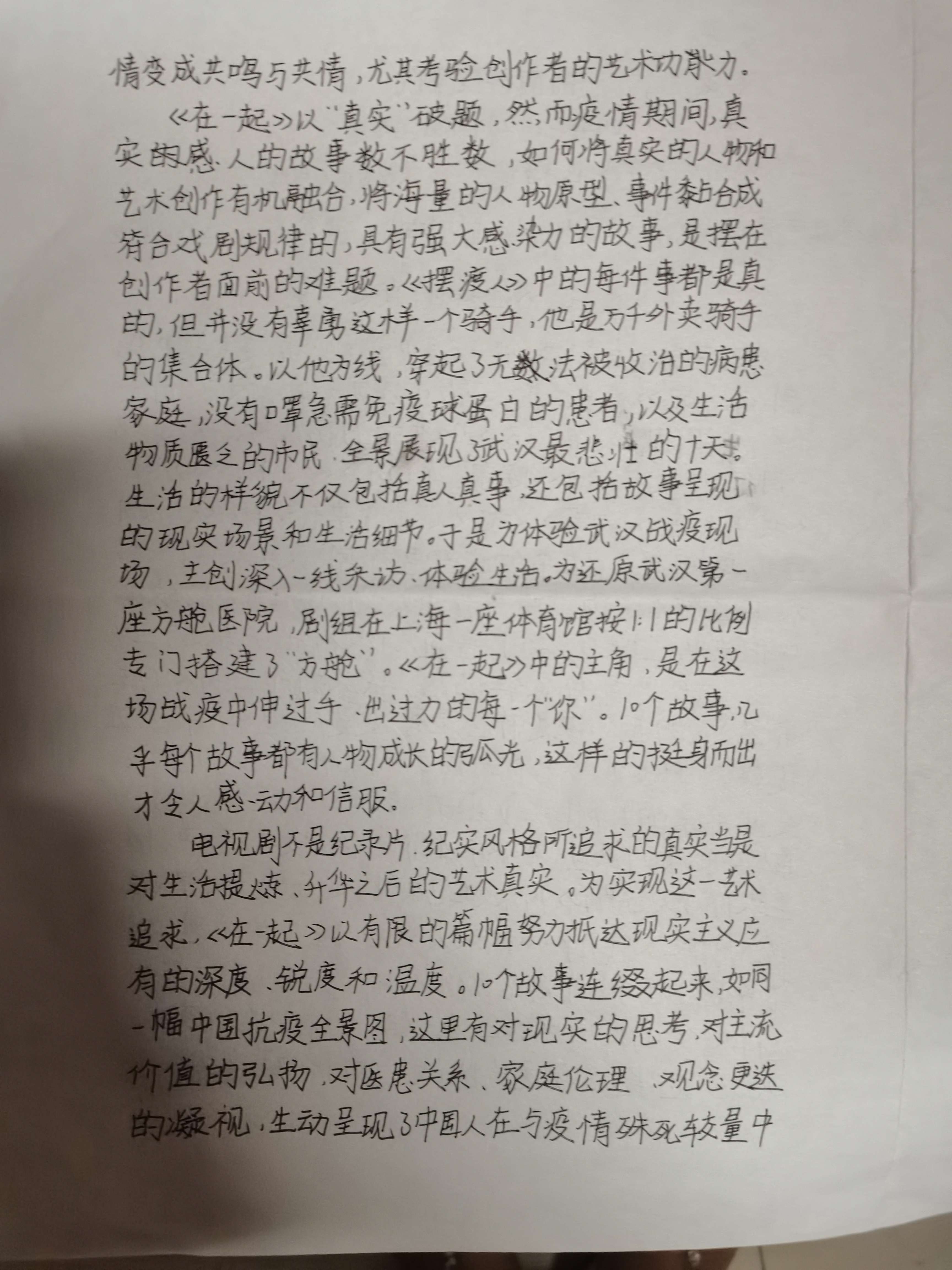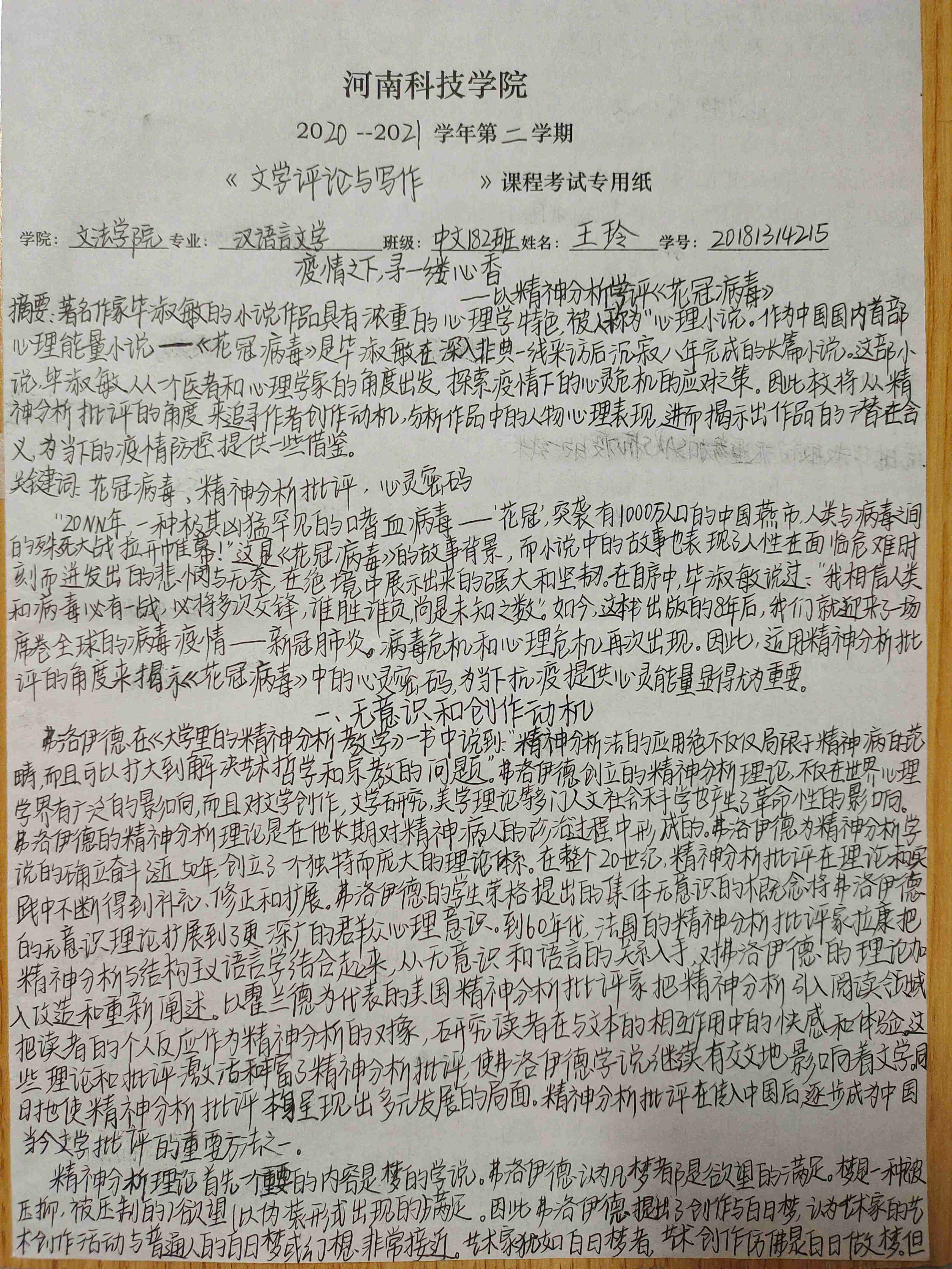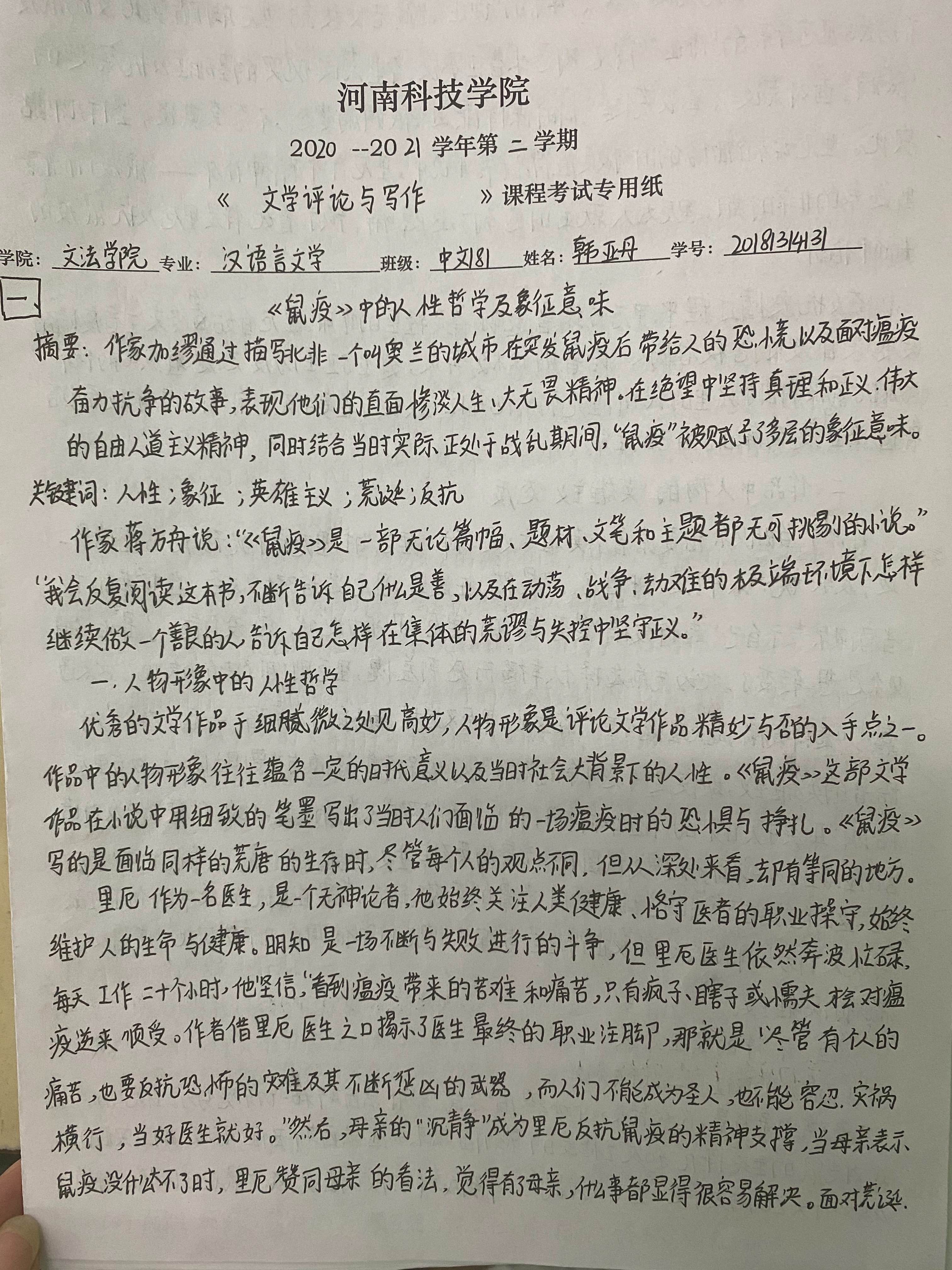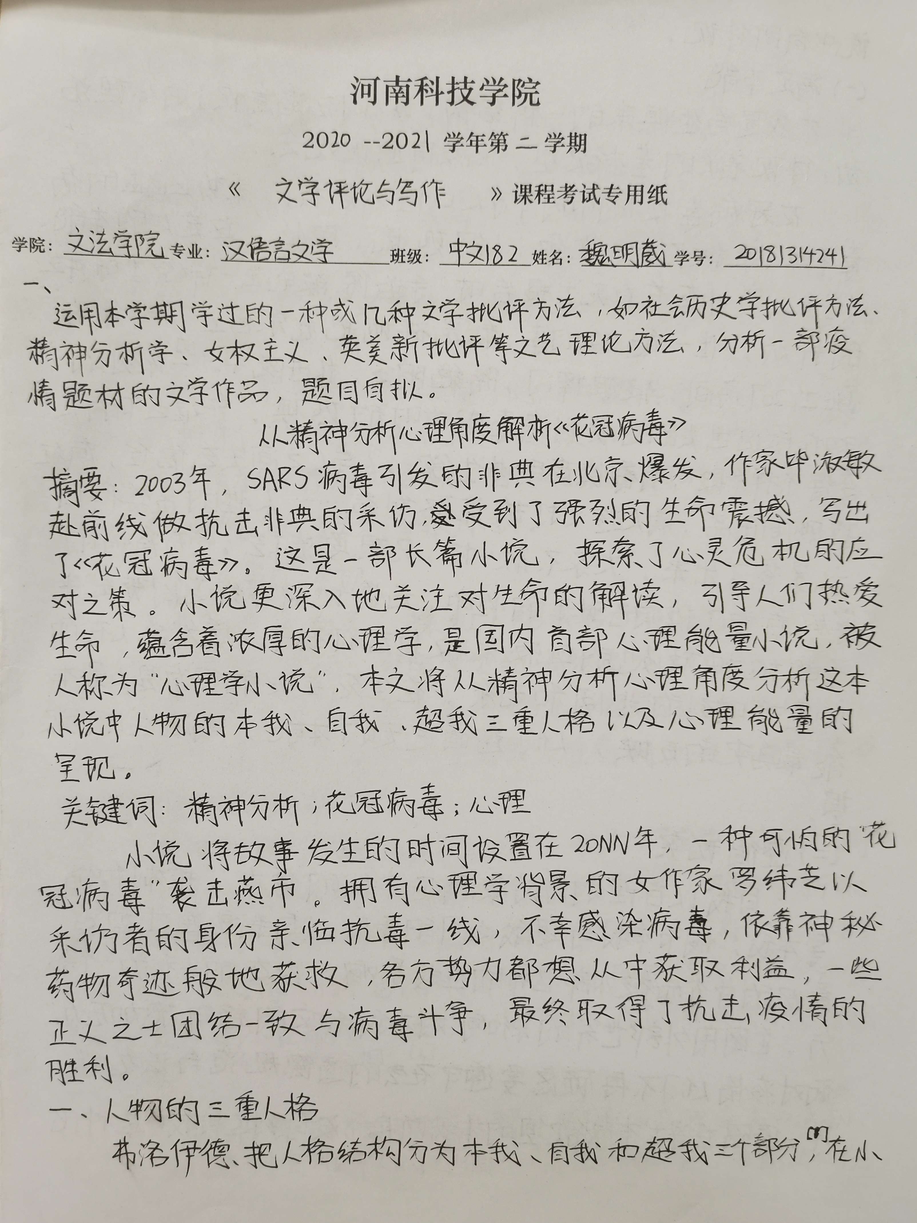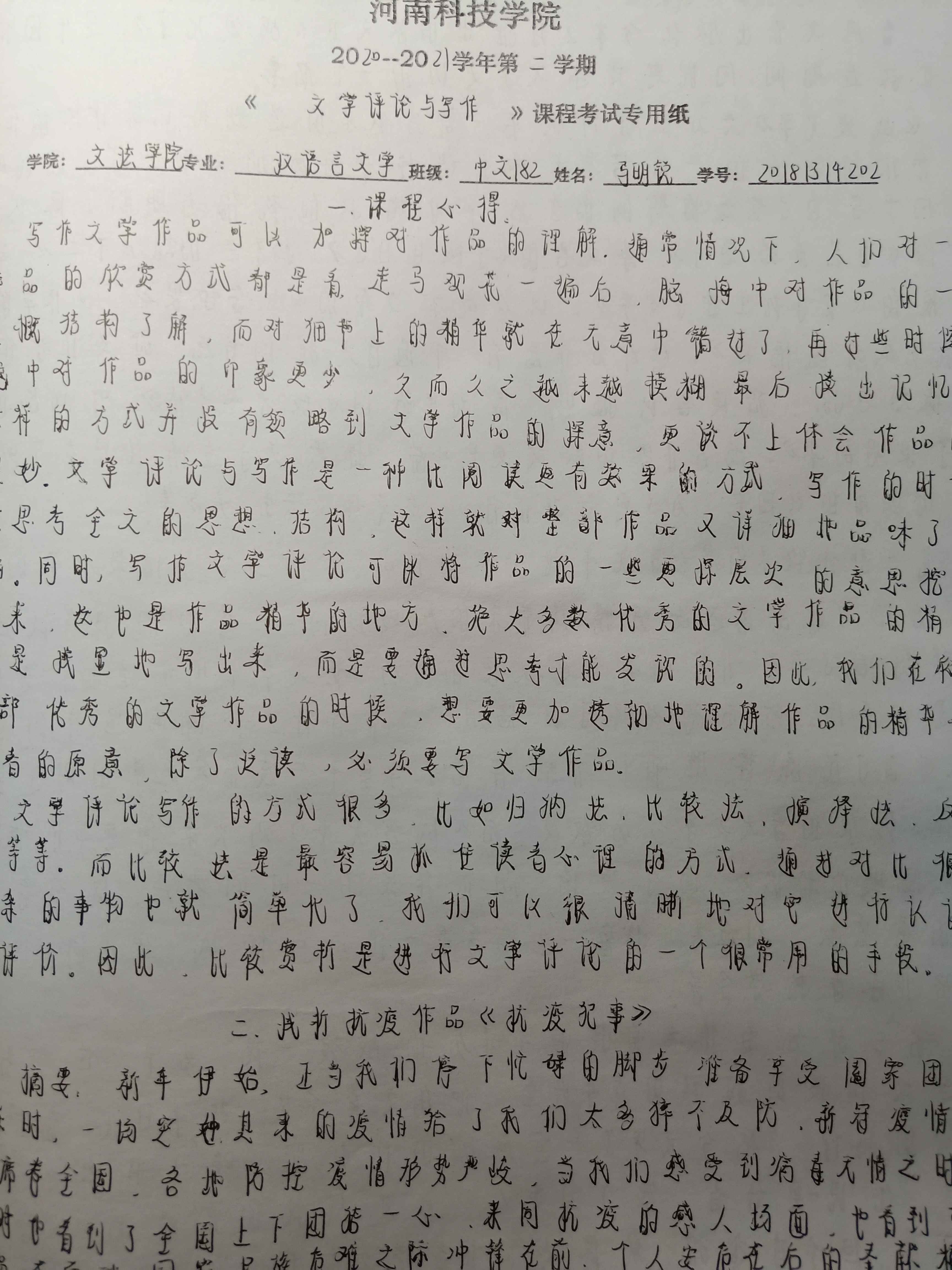 请同学们把期末考察作业即“关于疫情文学的评论”完成后,在微助教平台同时发送一份,(可以是拍照上传,也可以用讯飞手写字转word后进行电子版上传),辛苦大家啦,谢谢!