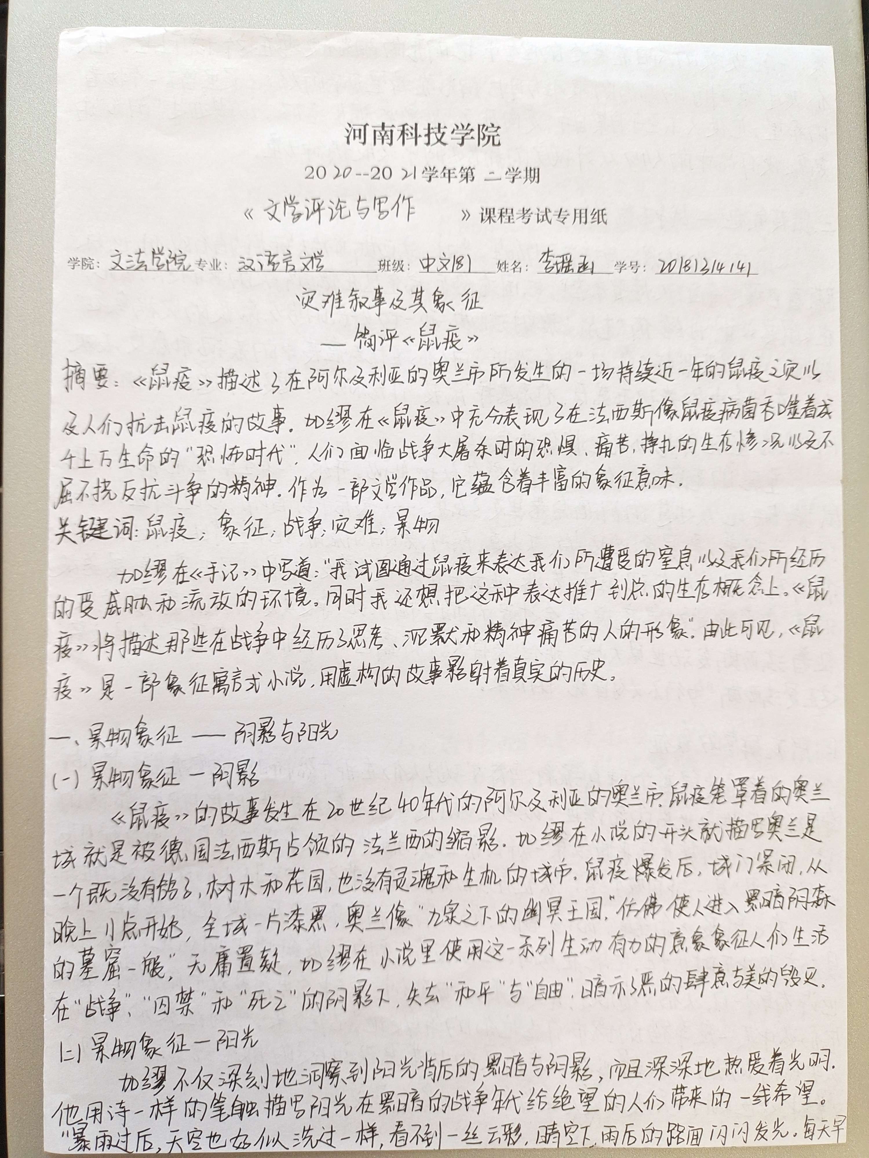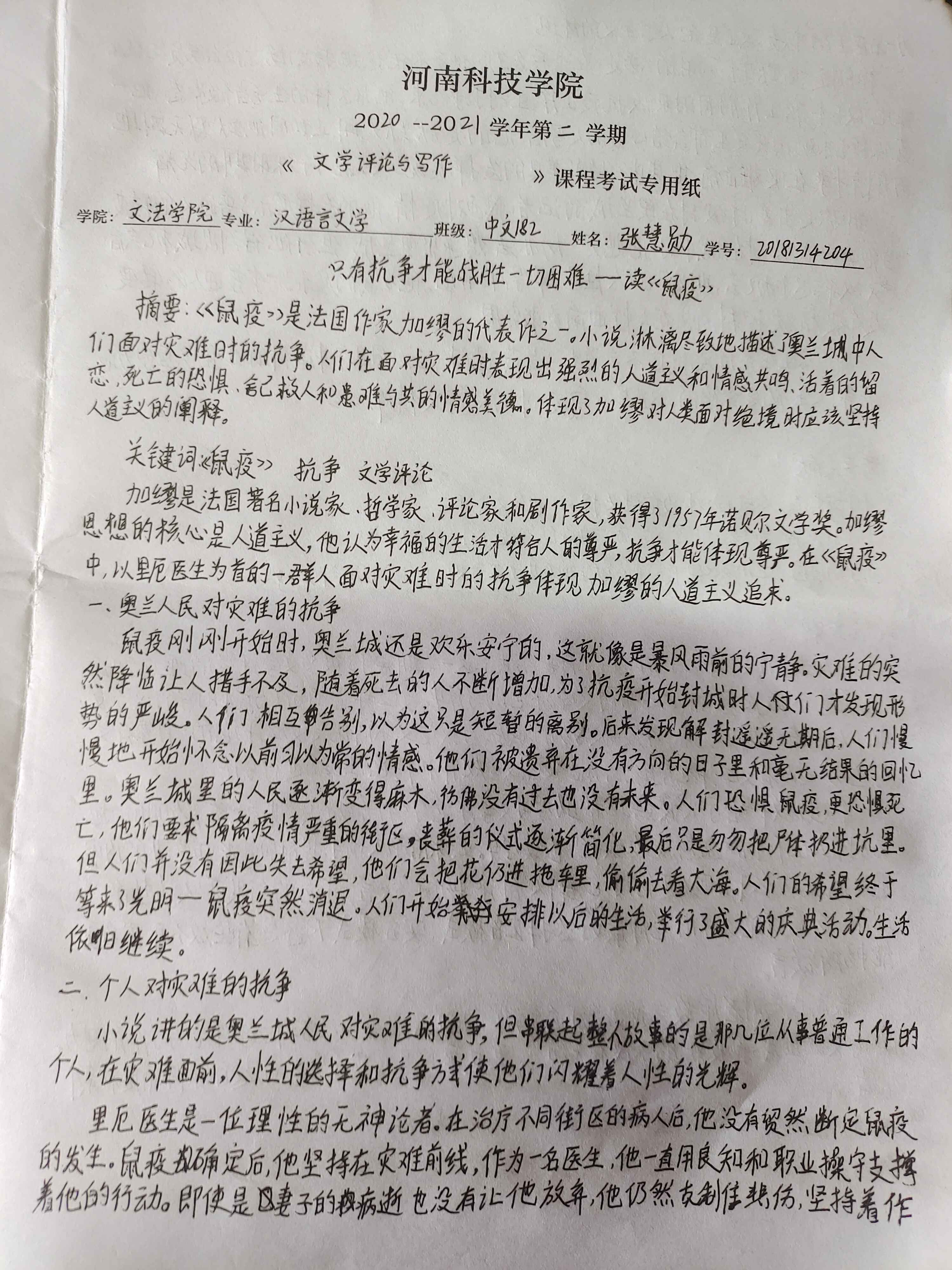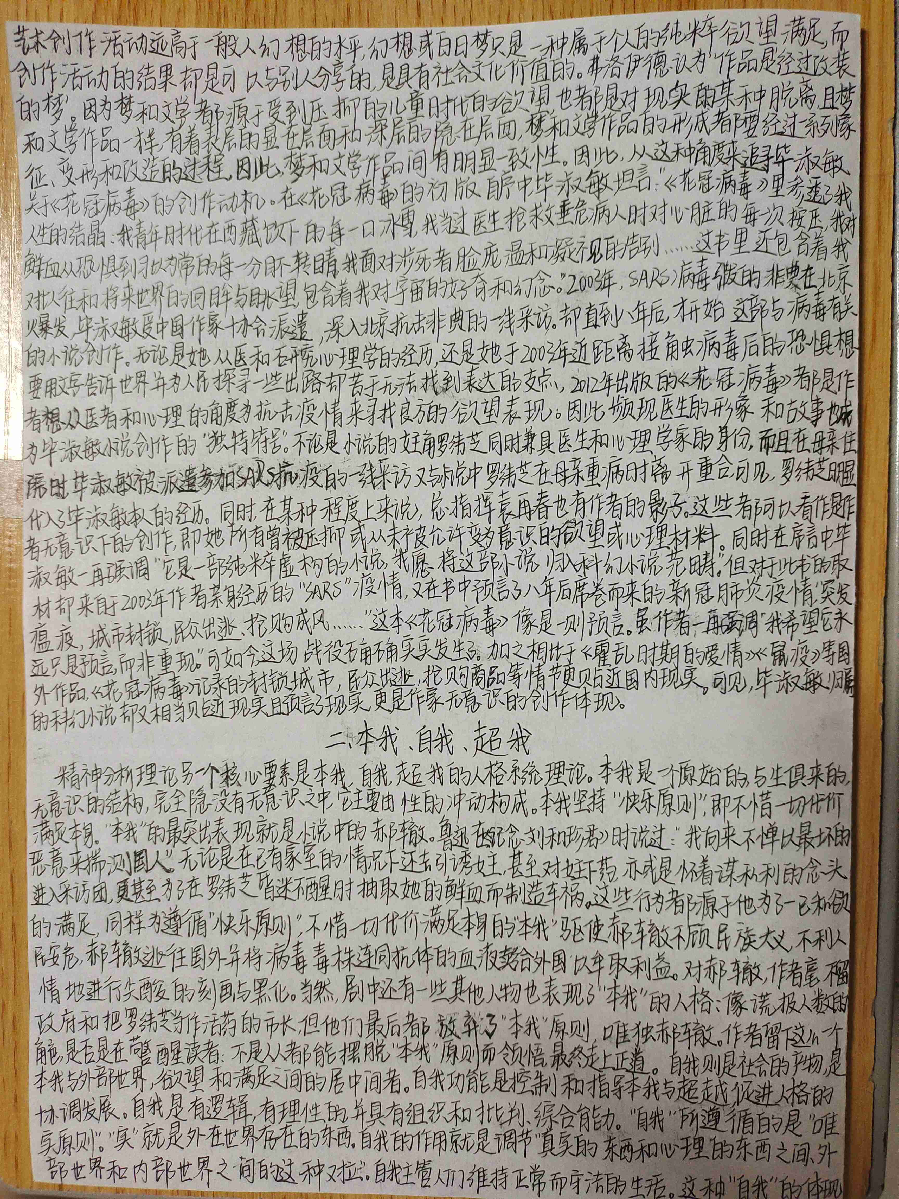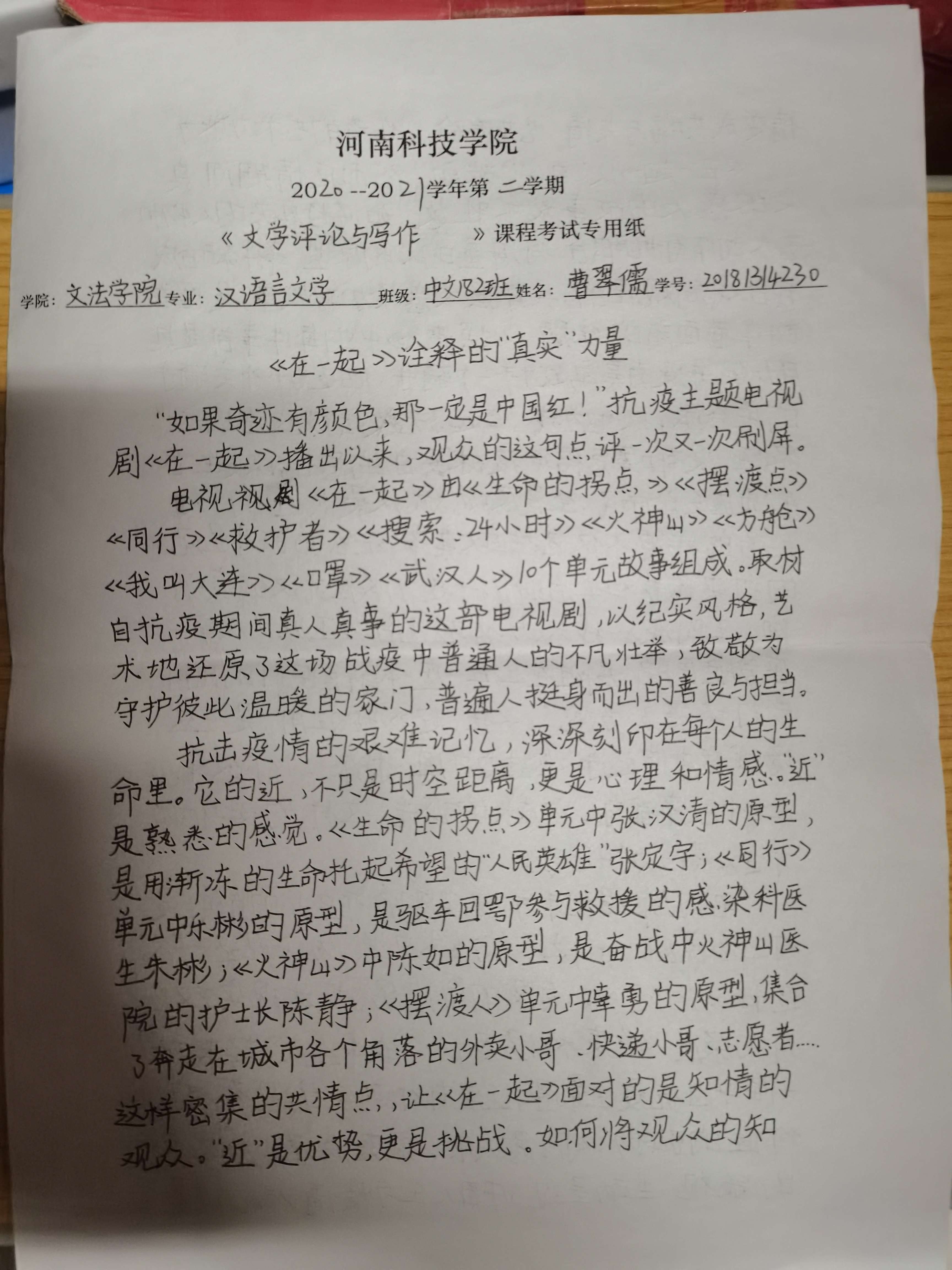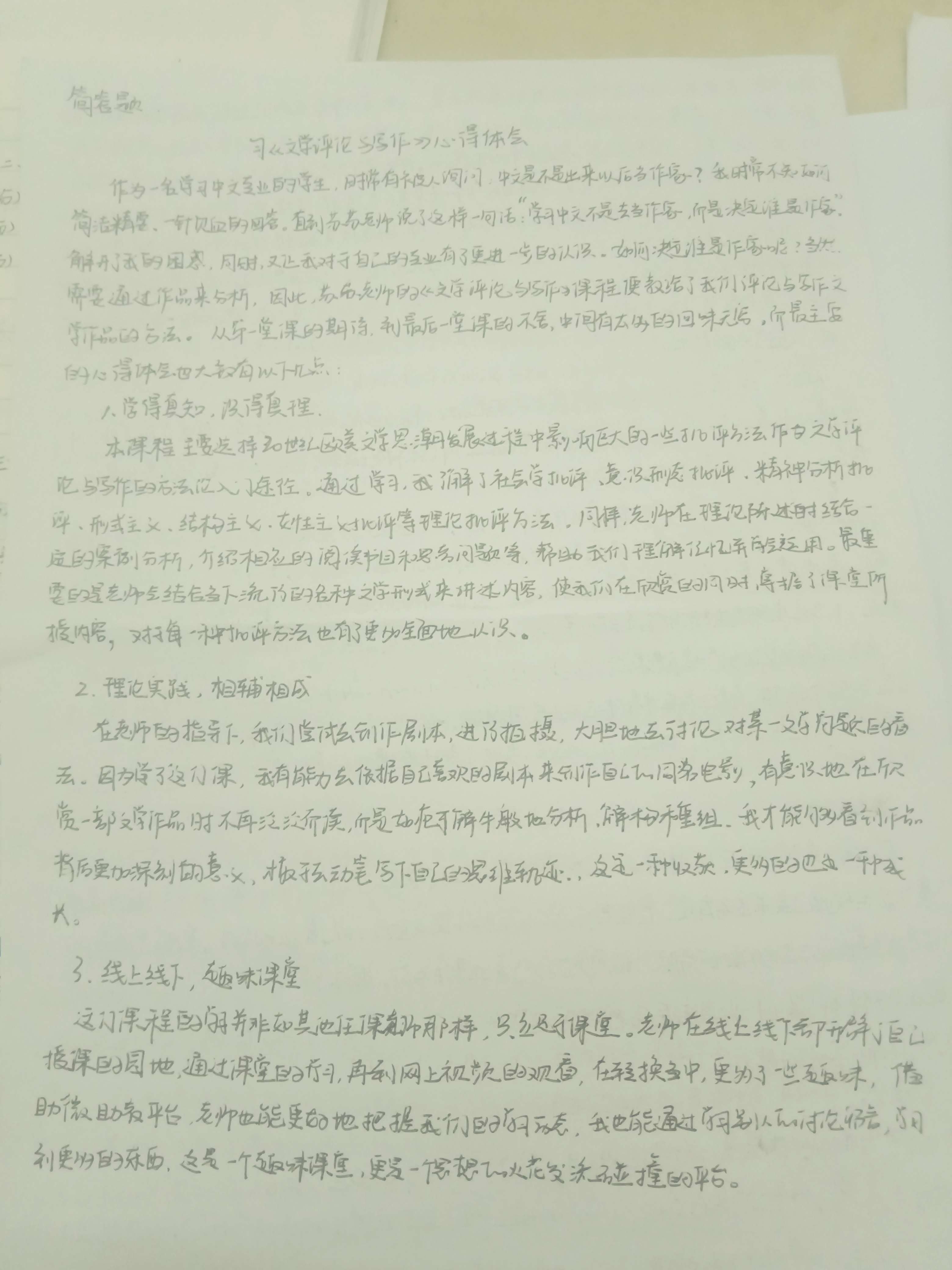 请同学们把期末考察作业即“关于疫情文学的评论”完成后,在微助教平台同时发送一份,(可以是拍照上传,也可以用讯飞手写字转word后进行电子版上传),辛苦大家啦,谢谢!