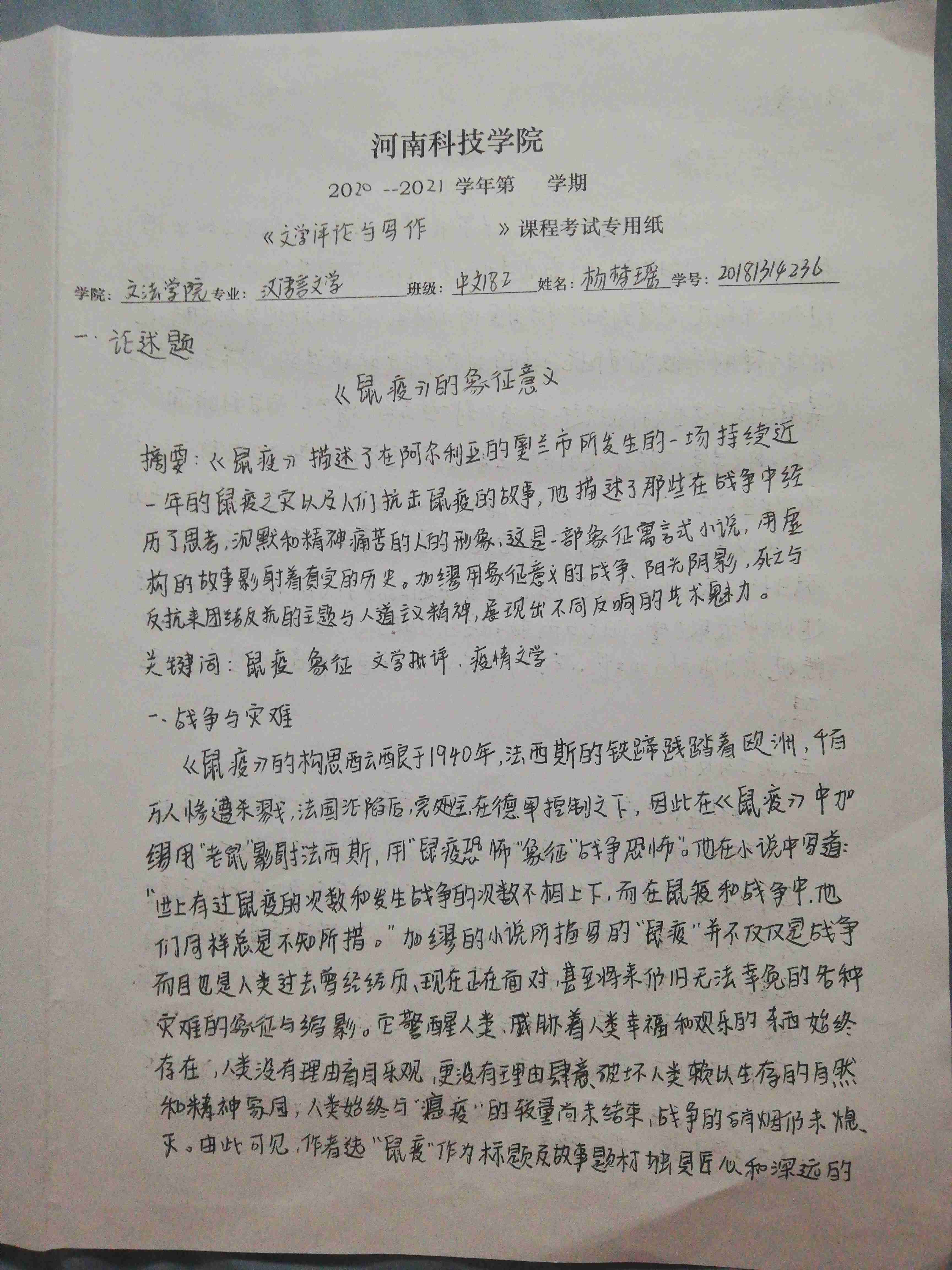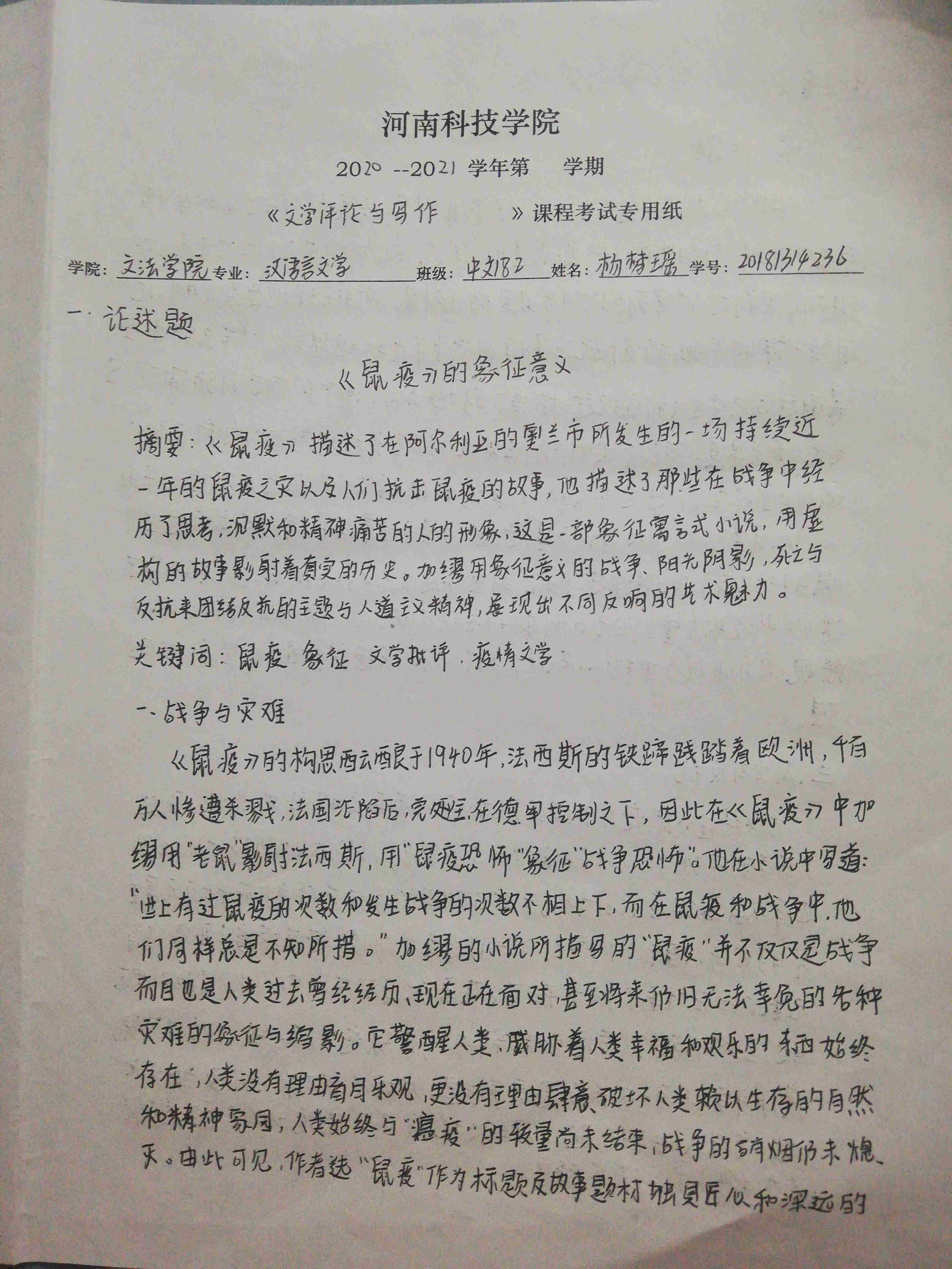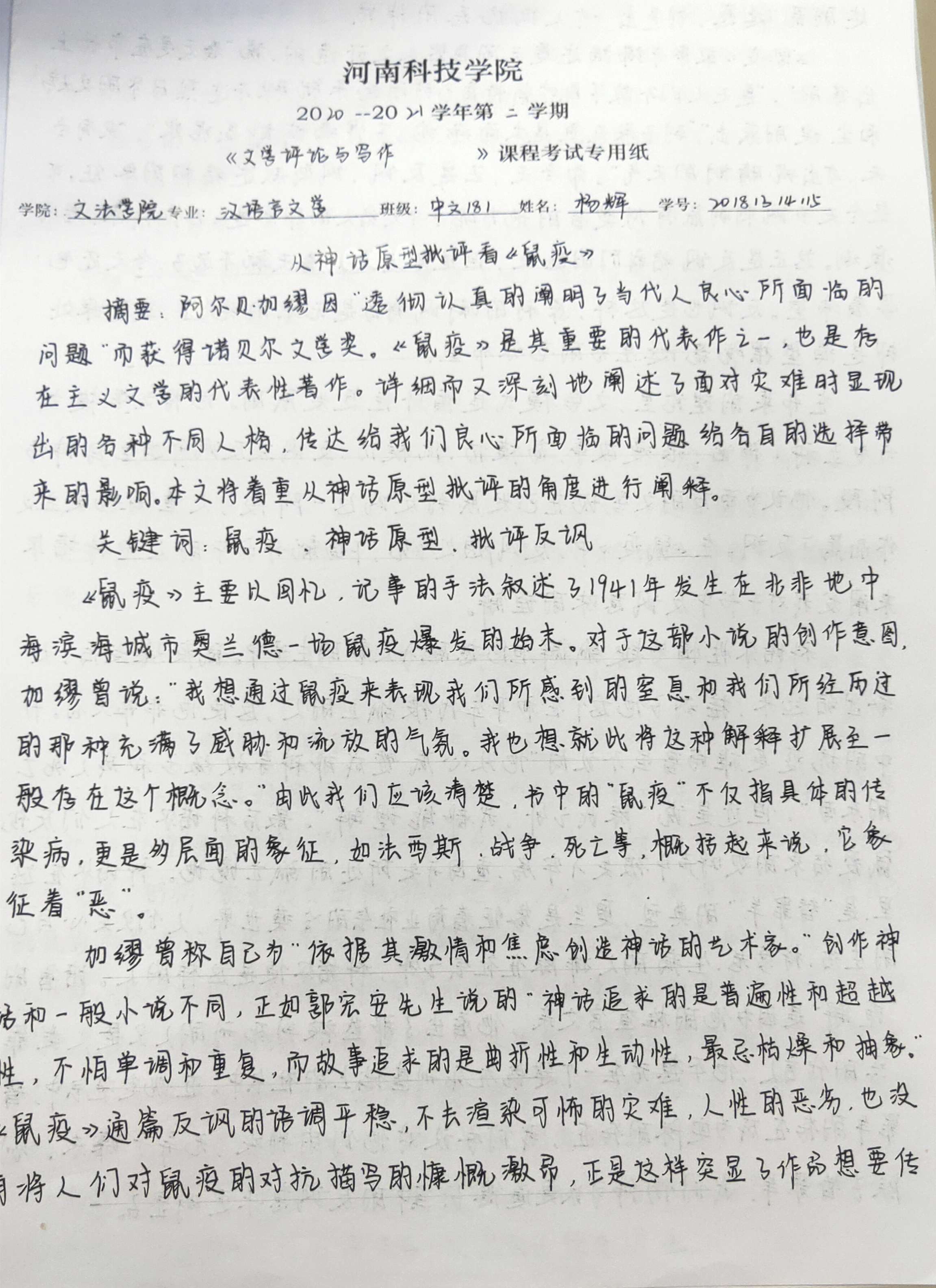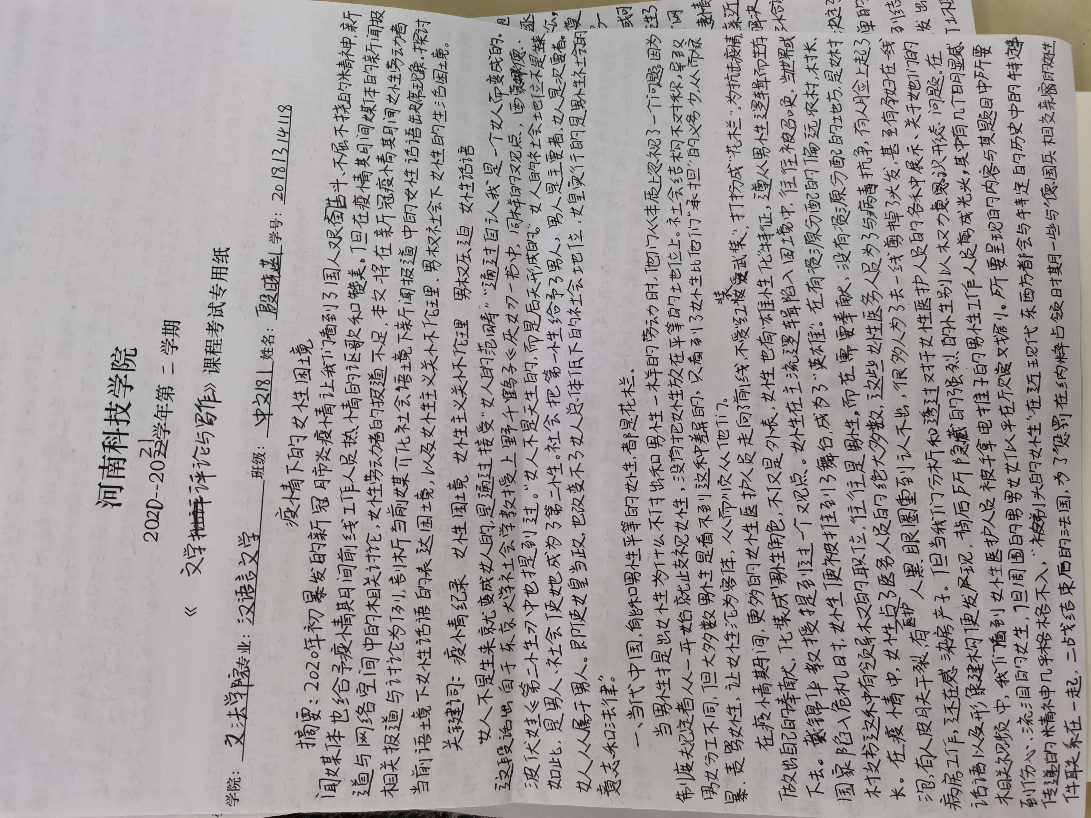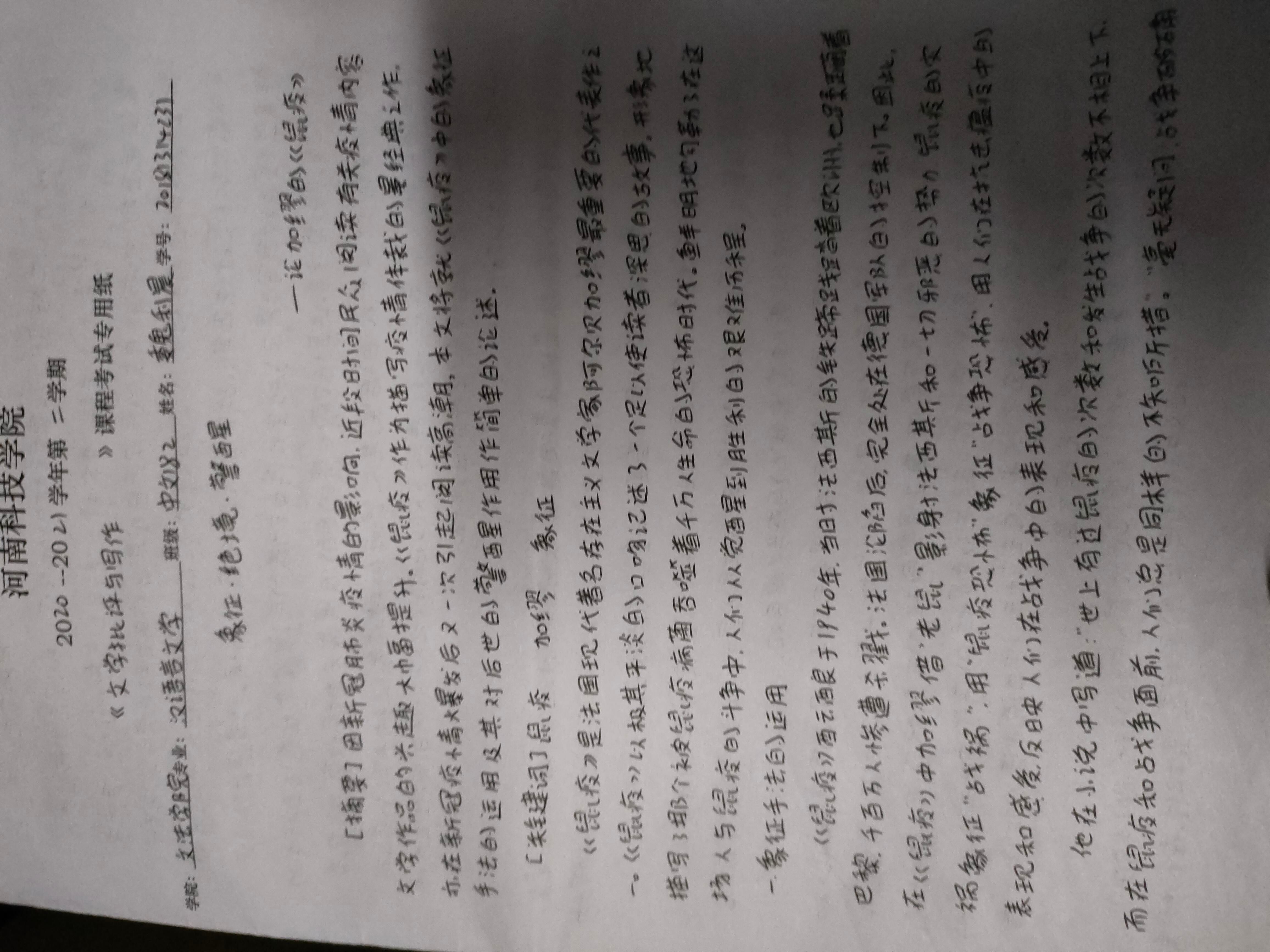 请同学们把期末考察作业即“关于疫情文学的评论”完成后,在微助教平台同时发送一份,(可以是拍照上传,也可以用讯飞手写字转word后进行电子版上传),辛苦大家啦,谢谢!