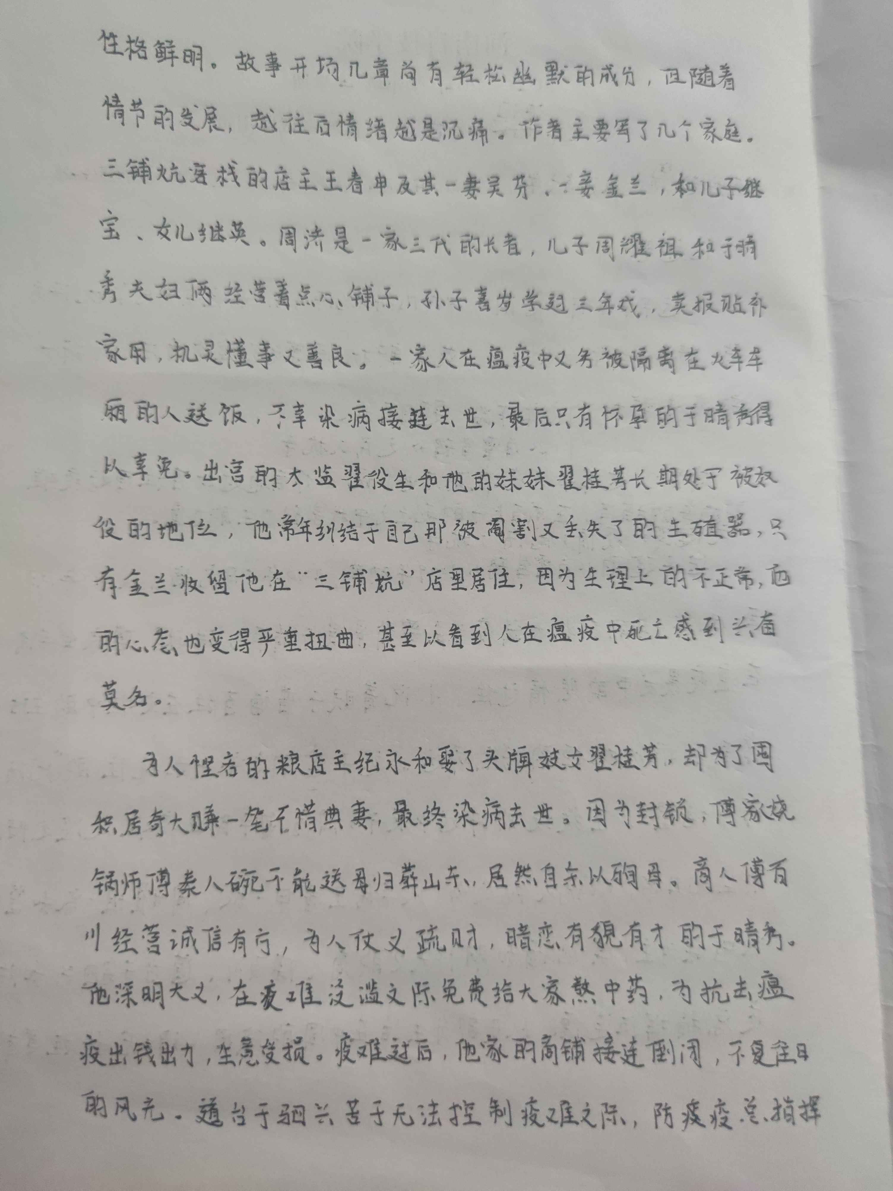 请运用本课程学习的学习的文学评论方法,评价和分析一部疫情文学题材作品,完成后,在微助教平台同时发送一份,(可以是拍照上传,也可以用讯飞手写字转word后进行电子版上传),辛苦大家啦,谢谢!