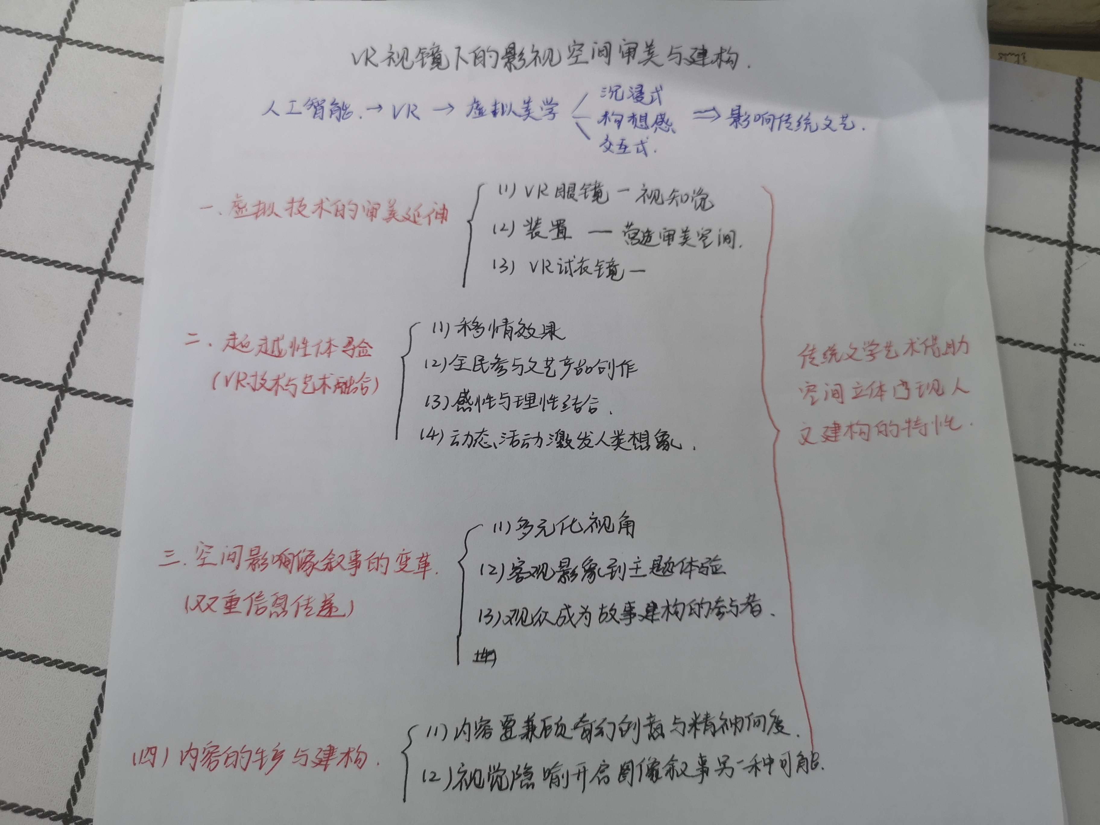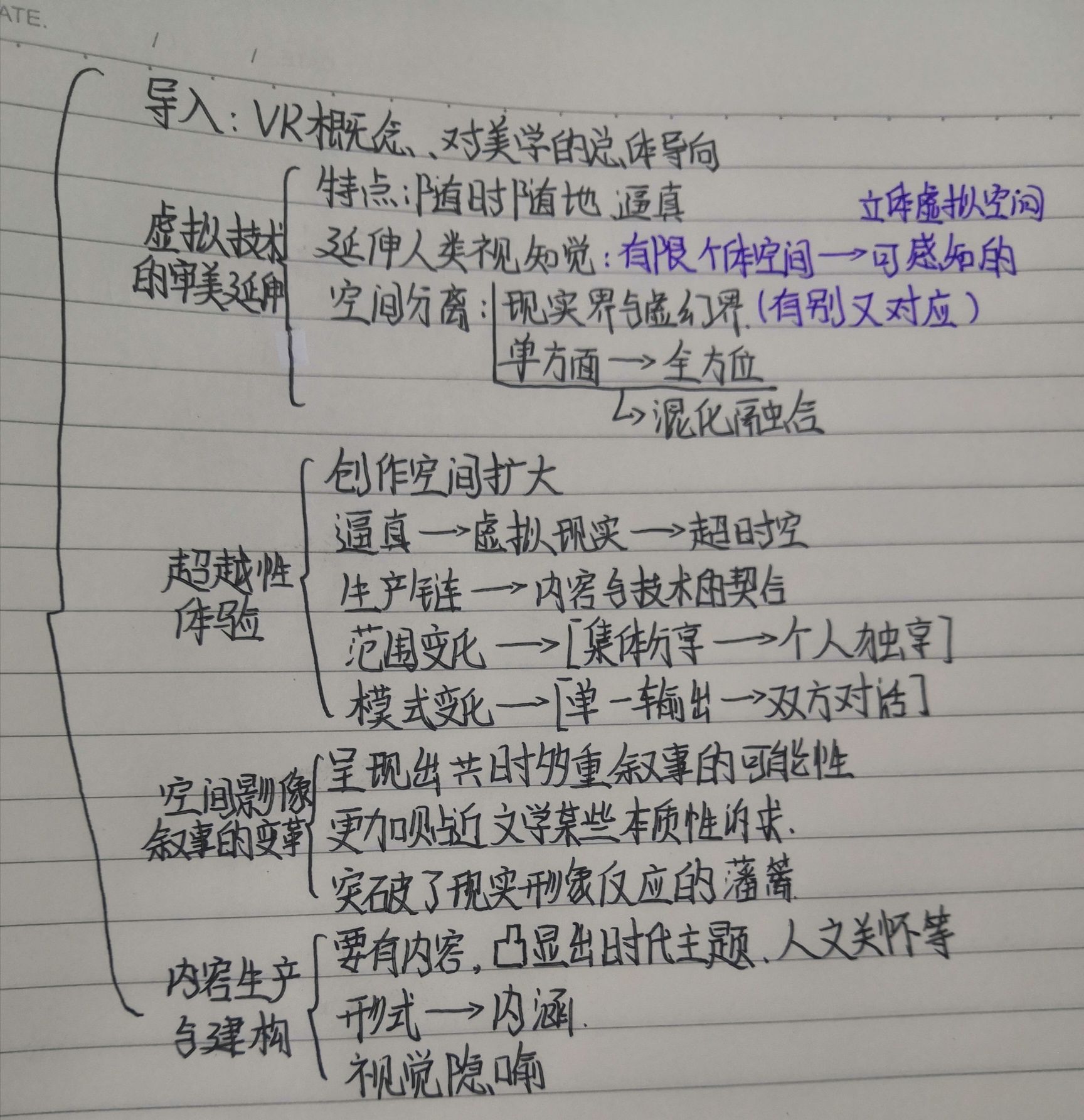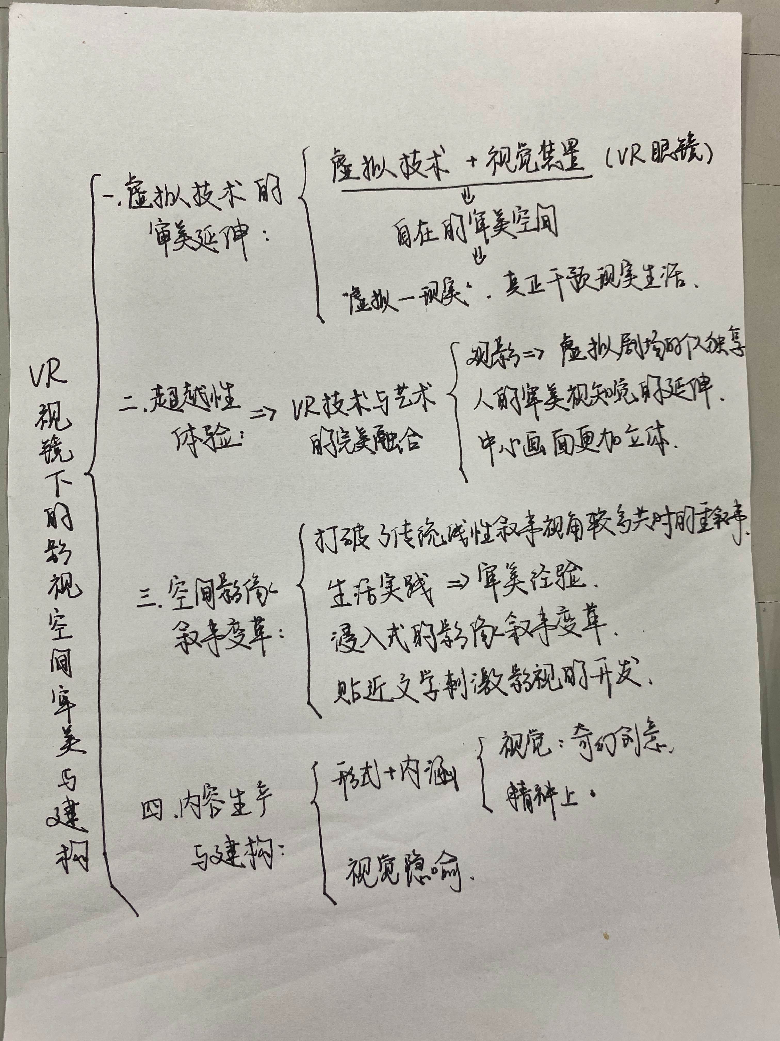 今天请大家下载学习《影视评论写作技巧》,并阅读苏苏老师的《VR视镜下的虚拟美学建构》这篇文章。请做一张本次课程的思维导图,上传到我们微助教平台。
