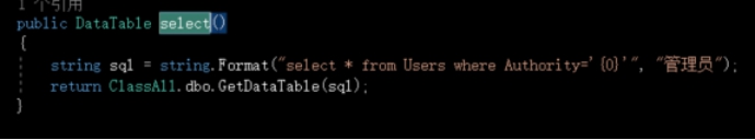 Select()方法是查找管理员是否存在的数据库查询语句