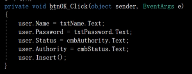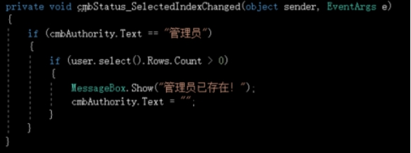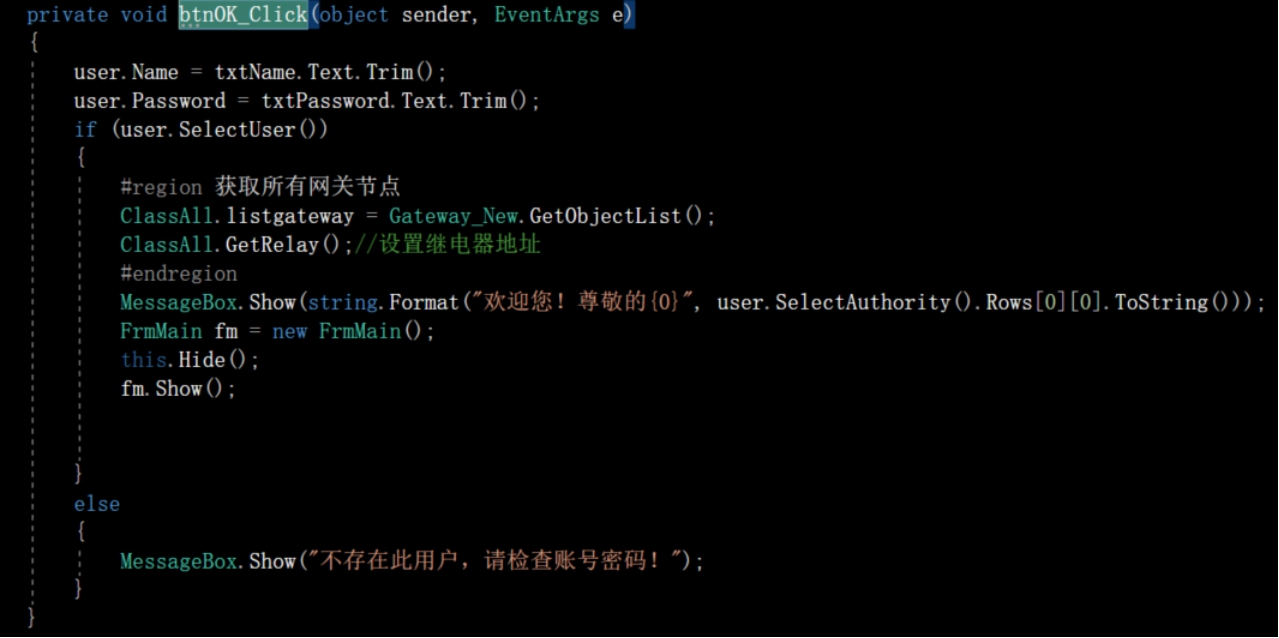 在登录界面的btnOK_Click中判断是否具有登录权限: