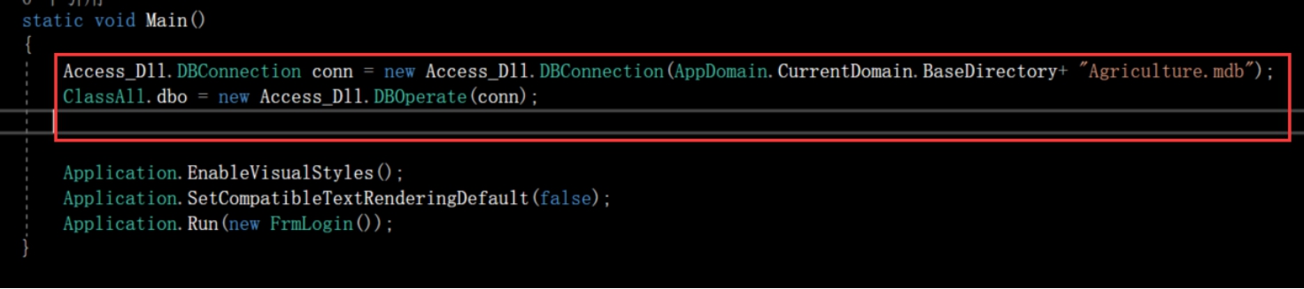 在Program类中添加如下代码,该代码是获取数据库连接对象,并且实例化数据库操作对象。