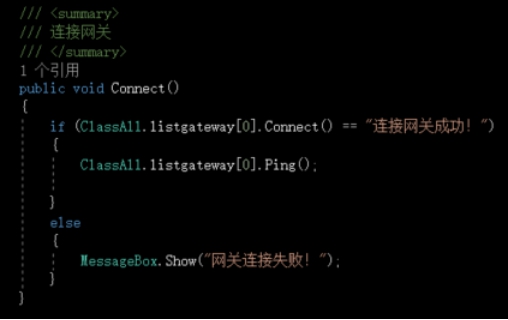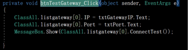 2) 在网关设置界面btnTestGateway_Click事件中,将网关属性更新,并且测试网关是否正常连接。