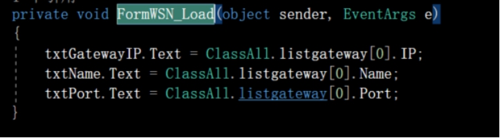 1) 在网关设置界面FormWSN_Load事件中,将网关属性赋值给界面控件。