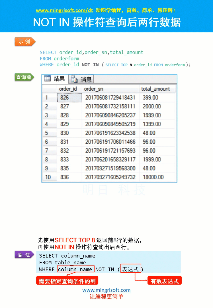 相同点:均在WHERE中使用作为筛选条件之一、均是等于的含义