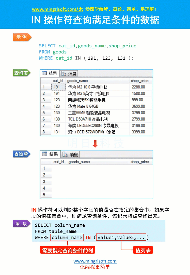 IN 操作符允许您在 WHERE 子句中规定多个值。