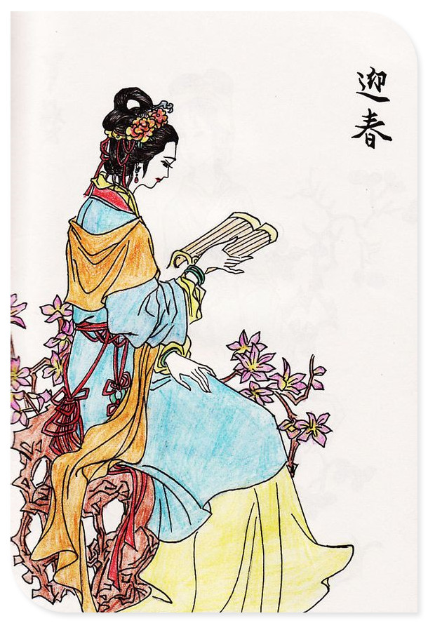 迎春,续书里面基本上给她丢开了。快要到八十回的时候,曹雪芹写的迎春已经受到孙家的种种迫害。他这也没有继续写下去迎春的结局,只有在贾母临终之前,外面来报告说,二小姐跟姑爷昨天晚上闹了一夜,所以一夜没好好睡,痰就给堵住了。这么就完了。
