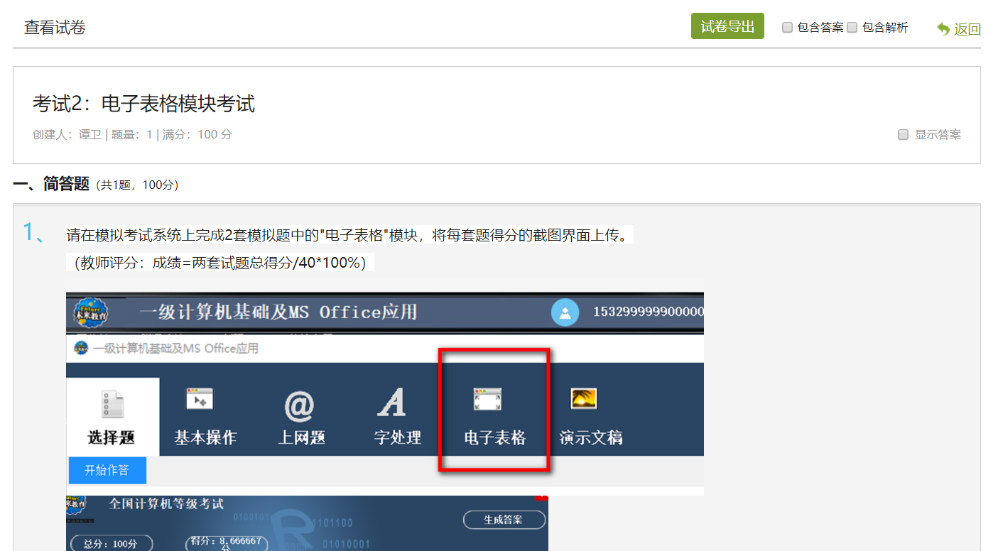 1.先自行在电脑上完成两套“电子表格”模块的试题后将截图保存在电脑中