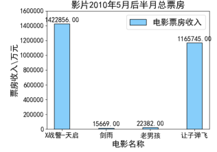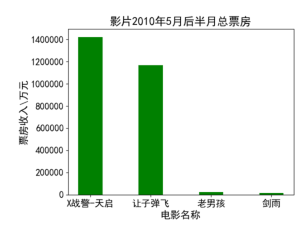 # 柱状图,xy轴分别为电影名和票房,并设置每根柱子颜色为绿色,宽度为0.4,表示占据40%的位置