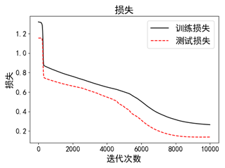 | #coding:utf-8 import numpyas np import pandas as pd import matplotlib.pyplotas plt import tensorflowas tf from sklearn.model_selection import train_test_split from sklearnimport preprocessing plt.rcParams['font.sans-serif'] = ['SimHei'] plt.rcParams['axes.unicode_minus'] = False df= pd.read_csv('iris.csv', delimiter=',') #对类别进行数值化处理 le = preprocessing.LabelEncoder() df['Cluster'] = le.fit_transform(df['Species']) x = df[['SepalLengthCm','SepalWidthCm','PetalLengthCm','PetalWidthCm']] y = df[['Cluster']] sess = tf.Session() seed = 2 tf.set_random_seed(seed) np.random.seed(seed) #创建训练集与测试集的划分 x_train, x_test,y_train, y_test=train_test_split(x, y, train_size=0.8, test_size=0.2) # 添加占位符,四个输入 x_data = tf.placeholder(shape=[None, 4], dtype=tf.float32) # 添加占位符,一个输出 y_target = tf.placeholder(shape=[None, 1], dtype=tf.float32) # 定义如何添加一个隐藏层的函数 def add_layer(input_layer, input_num, output_num): weights = tf.Variable(tf.random_normal(shape=[input_num, output_num])) biase = tf.Variable(tf.random_normal(shape=[output_num])) hidden_output = tf.nn.relu(tf.add(tf.matmul(input_layer, weights), biase)) return hidden_output # 定义三个隐藏层对应的结点个数 hidden_layer_nodes = [10,8,10] hidden_output = add_layer(x_data, 4, hidden_layer_nodes[0]) # 循环添加三个隐藏层 for i in range(len(hidden_layer_nodes[:-1])): hidden_output = add_layer(hidden_output, hidden_layer_nodes[i],hidden_layer_nodes[i + 1]) final_output = add_layer(hidden_output,hidden_layer_nodes[-1],1) # 定义损失函数,使得误差最小 loss = tf.reduce_mean(tf.square(y_target - final_output)) # 设置学习率来调整每一步更新的大小 my_opt = tf.train.GradientDescentOptimizer(learning_rate=0.00004) # 优化目标:最小化损失函数 train_step = my_opt.minimize(loss) init = tf.global_variables_initializer() sess.run(init) loss_vec = [] #训练操失 test_loss = [] #测试操失 #训练次数 for i in range(10000): #训练 sess.run(train_step, feed_dict={x_data:x_train, y_target:y_train}) #训练数据评估模型 temp_loss = sess.run(loss, feed_dict= {x_data:x_train, y_target:y_train}) loss_vec.append(np.sqrt(temp_loss)) #测试数据评估模型 test_temp_loss = sess.run(loss, feed_dict= {x_data:x_test, y_target:y_test}) test_loss.append(np.sqrt(test_temp_loss)) if (i+1)%1000 == 0: print('Generation:' + str(i+1) + '.Loss = ' + str(temp_loss)) test_preds = [np.round(item,0) for item in sess.run(final_output,feed_dict={x_data:x_test})] train_preds = [np.round(item,0) for item in sess.run(final_output,feed_dict={x_data:x_train})] y_test = [i for i in y_test['Cluster']] y_train = [i for i in y_train['Cluster']] test_acc = np.mean([i==j for i, j in zip(test_preds, y_test)]) * 100 train_acc = np.mean([i==j for i, j in zip(train_preds, y_train)]) * 100 print('训练数据预测精确度:{}'.format(train_acc)) print('测试数据训练精确度:{}'.format(test_acc)) plt.plot(loss_vec, 'k-', label ='训练损失') plt.plot(test_loss, 'r--', label ='测试损失') plt.title('损失') plt.xlabel('迭代次数') plt.ylabel('损失') plt.legend(loc='upper right') plt.show() |