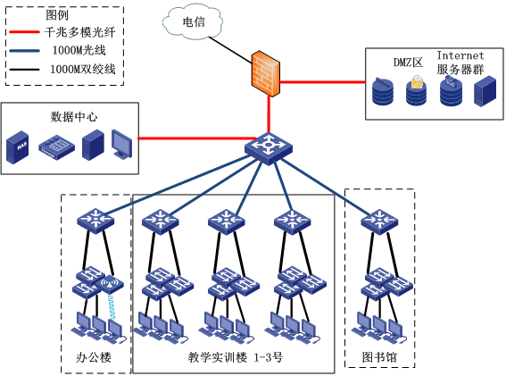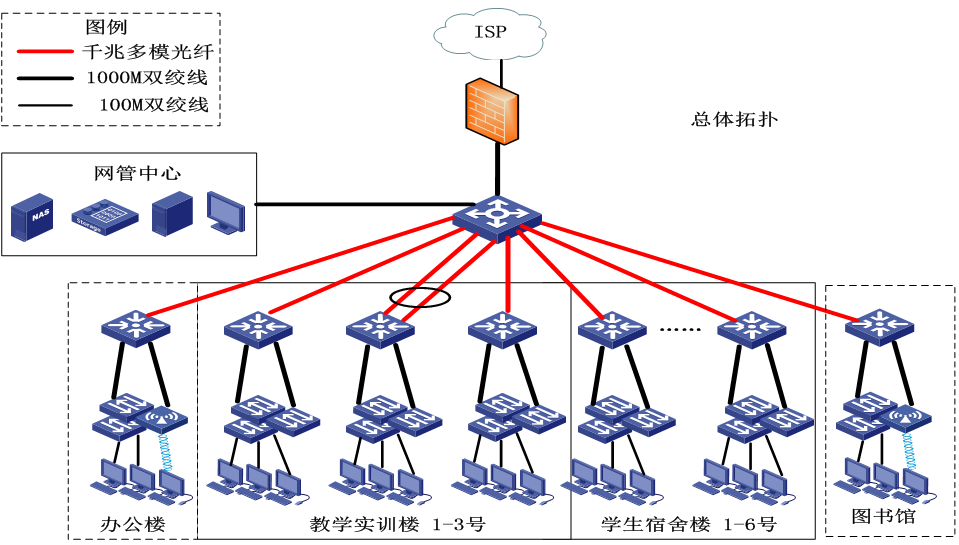 (4)整个校园网主干网实现千兆传输,并做到百兆到桌面;