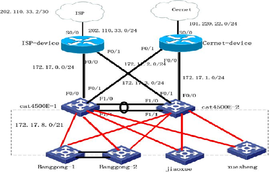 Cernet-device | Certnet出口路由器 | F0/0 | 172.17.1.1/24 | Cat4500E-2 | F0/0 |