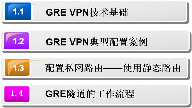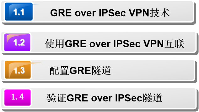 任务目标 | 了解MPLS VPN的作用。掌握GRE VPN、IPSec VPN的原理和配置。 |