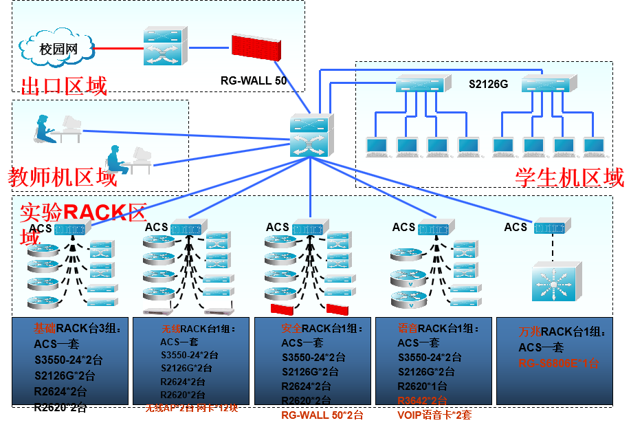 锐捷网络实验室由多台路由器和交换机设备组成的RACK(实验台);