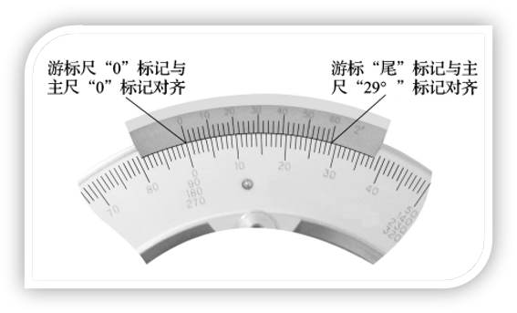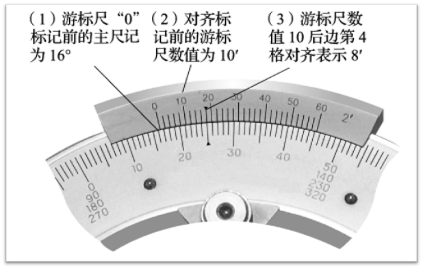 3、掌握游标万能角度尺的读数方法