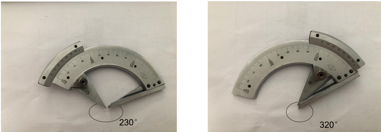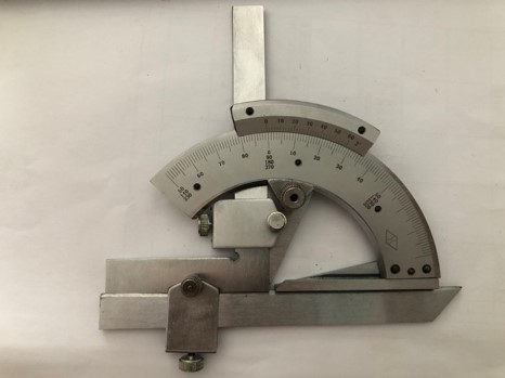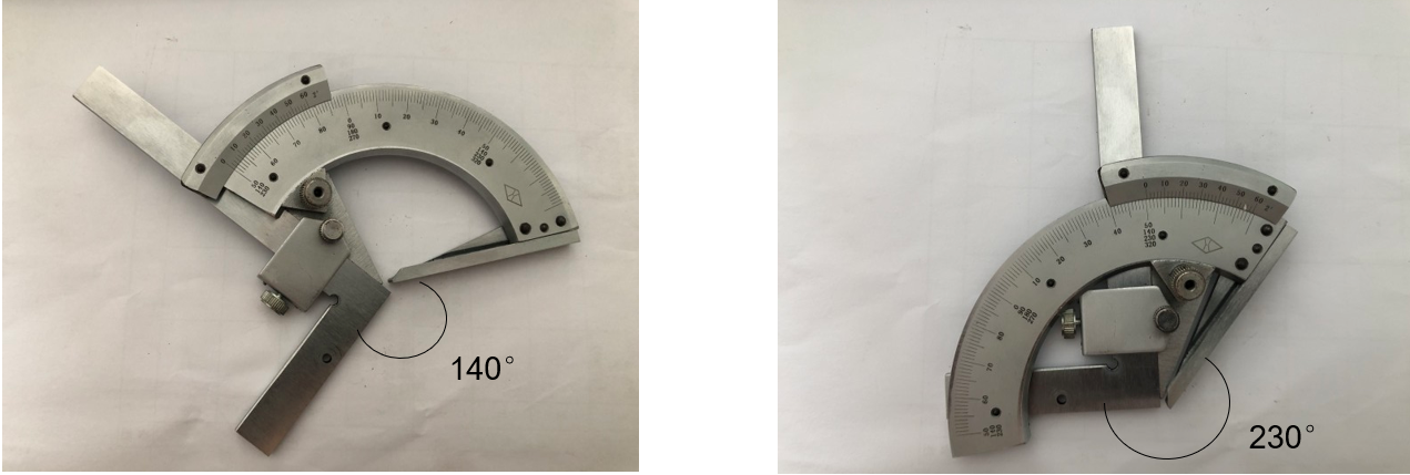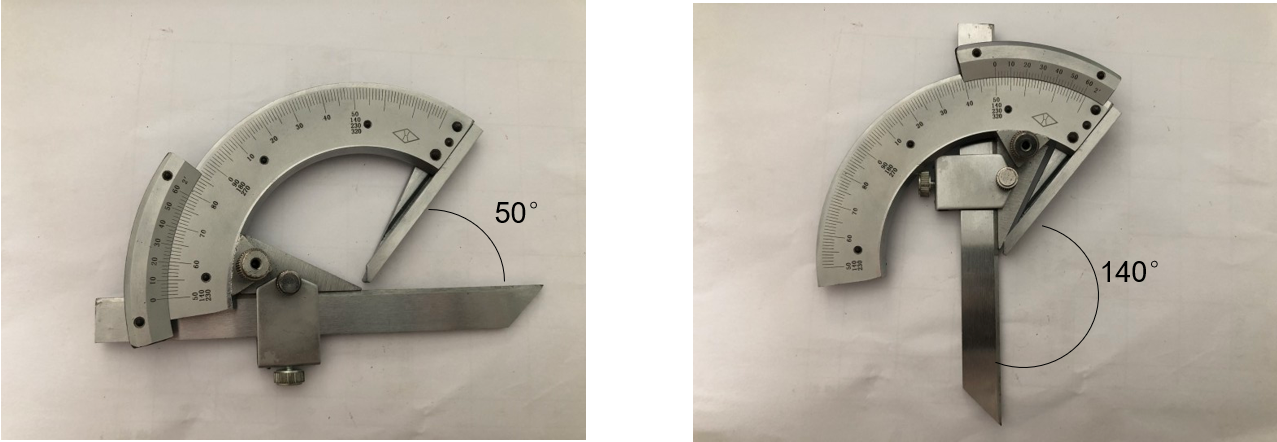 万能角度尺是利用游标读数原理来直接测量工件角或进行划线的一种角度量具。万能角度尺适用于机械加工中的内、外角度测量,可测0°-320°外角及 40°-130°内角。