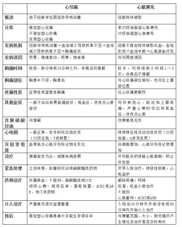 1.正确区分典型心绞痛与心肌梗死的胸痛。