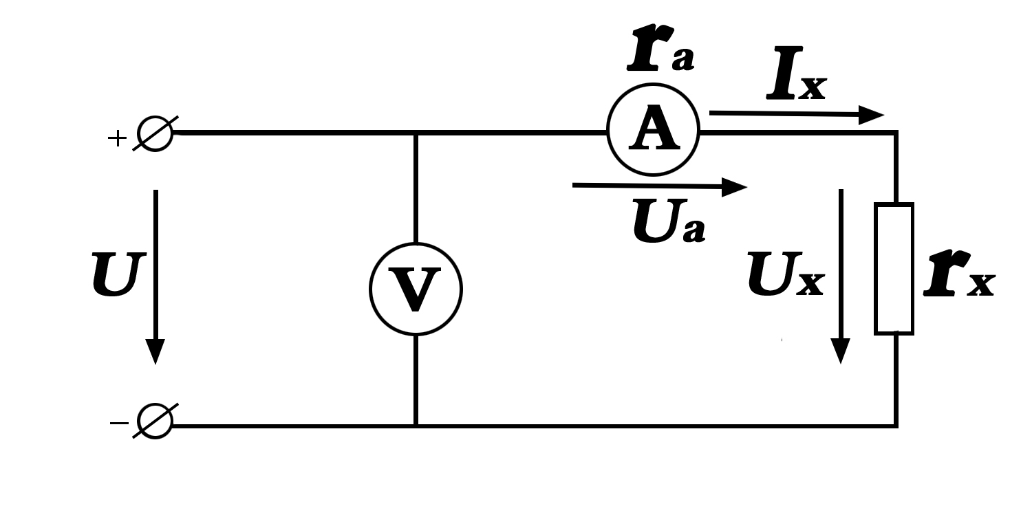 上图中电压表和电流表有两种接线方式,不论采用哪种电路,由于仪表本身具有一定的内阻,根据电流表、电压表所测数值计算出电阻值,都存在误差。
