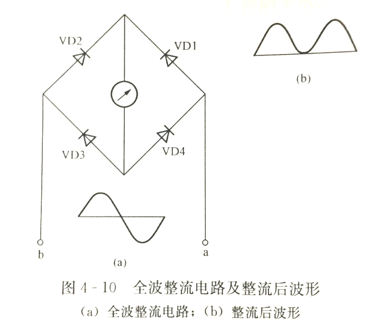由于万用表的表头是磁电系测量机构,只能测量直流。因此测量交流电时,必须采取整流措施。