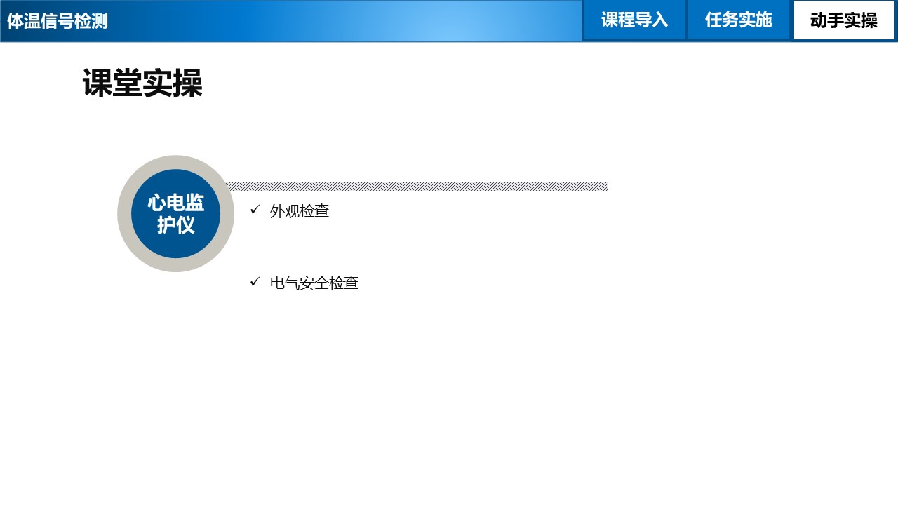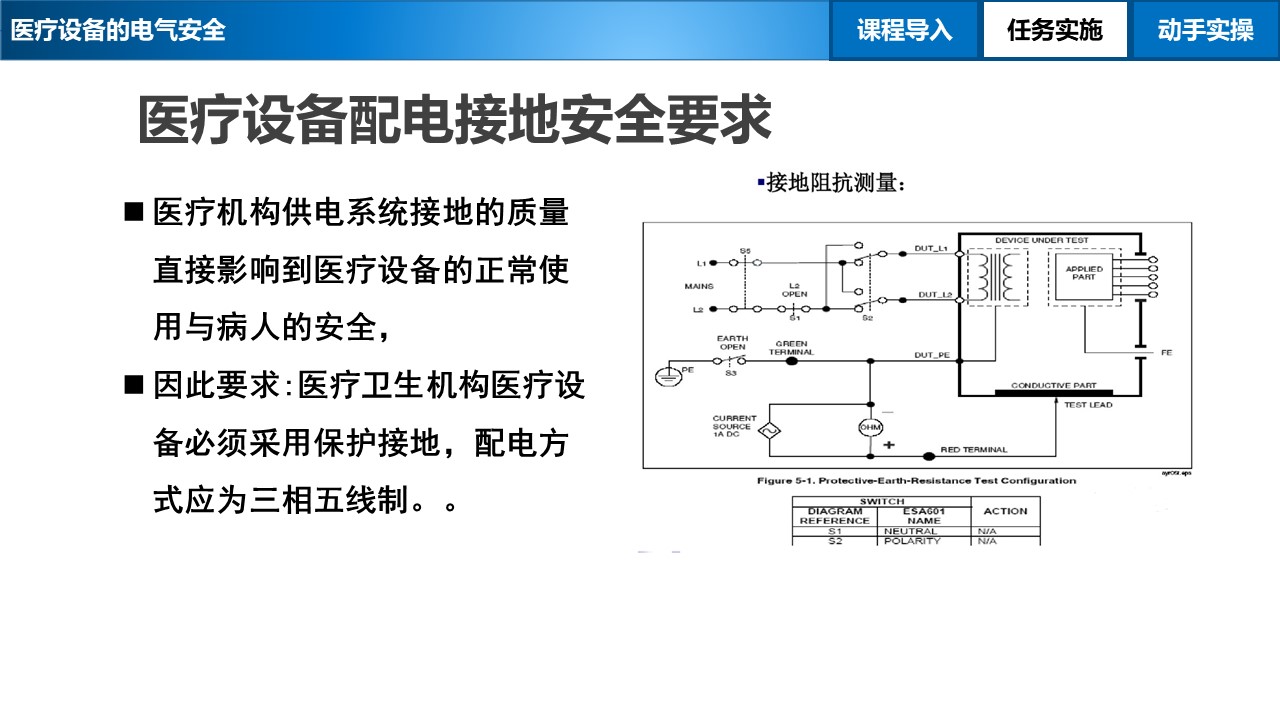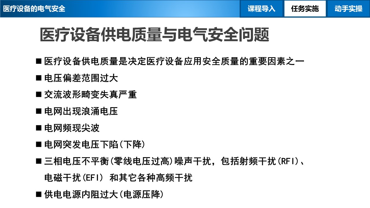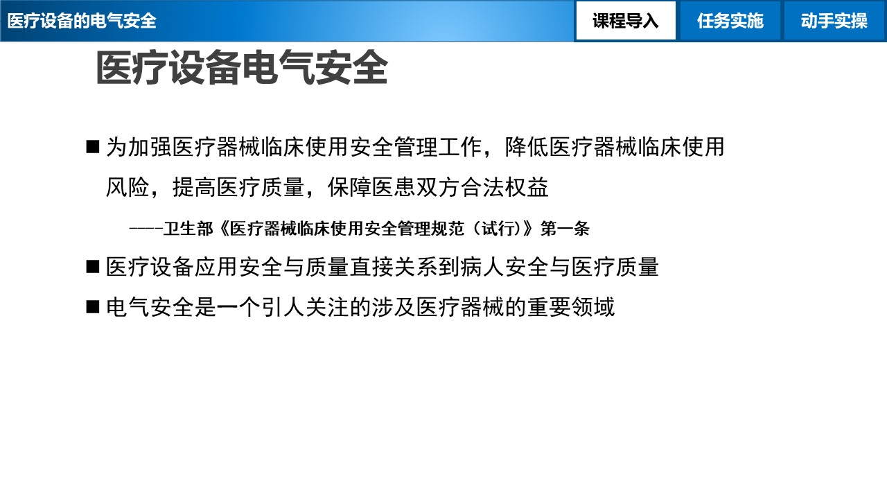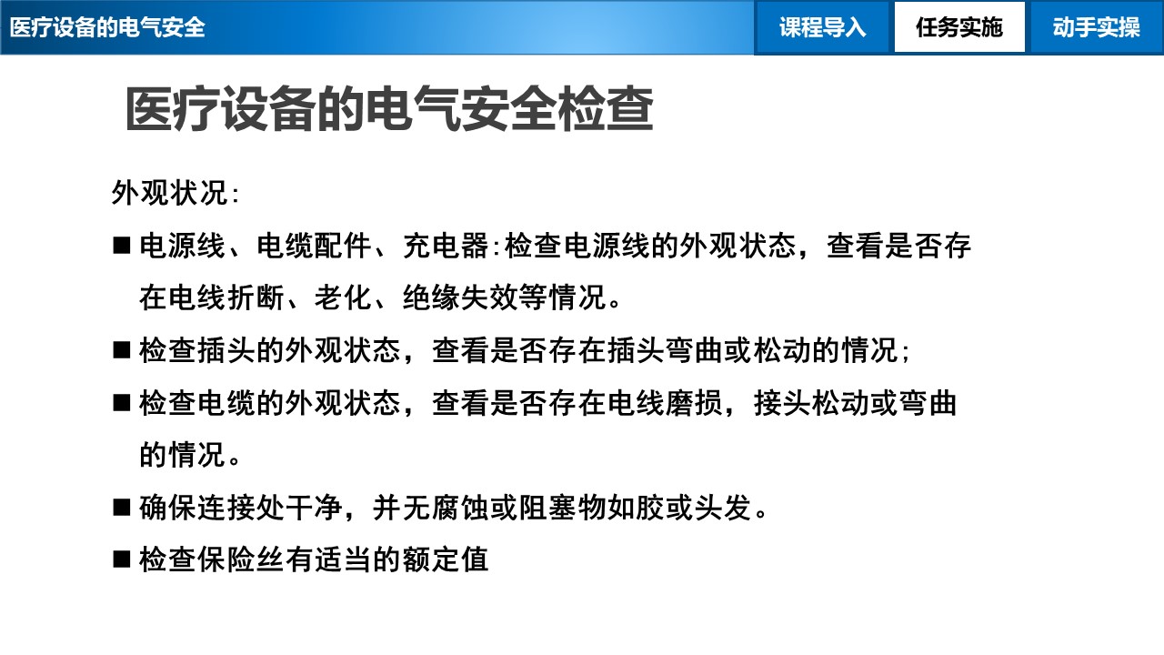 1、知识目标:(1)了解医用电子仪器的安全风险