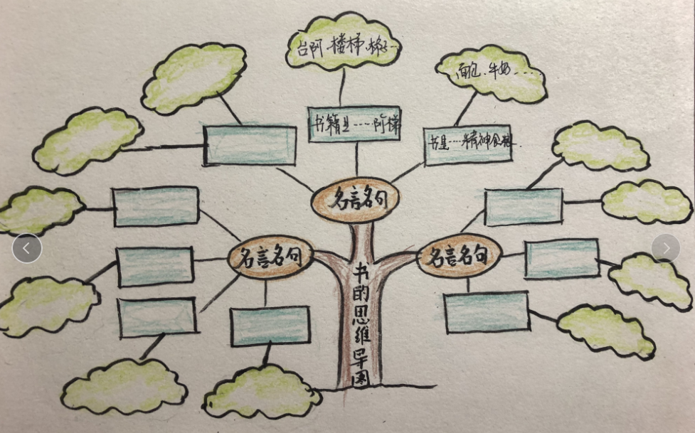 要求学生用思维导图的形式,对书的图形创意展开联想,根据名言警句拓展思维,图文并茂进行表现,根据拓展的图形,寻找在形和意上的契合点,创造出新的图形。