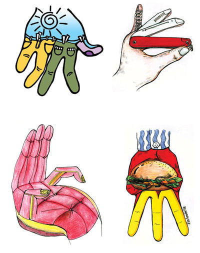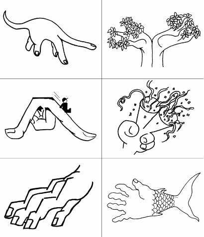 2、要求各元素形似或意象。 ▲训练目的:激发学生灵感,提高视觉表现能力。训练思维想像的速度与创意表现能力。培养学生对事物的观察力和记忆力,以及对物体进行系统、连贯思维的能力。 联想捕捉生活中的相似视觉形象,引导学生对周边的事物、物体发生兴趣,并加以观察,再用艺术的手法加以表现。
